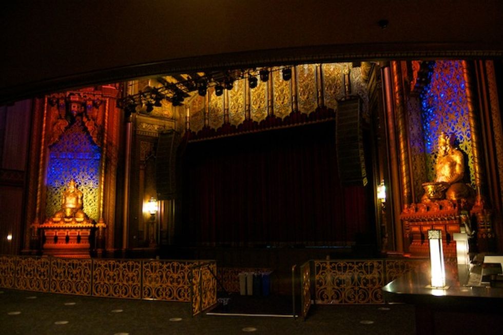 The gilded guardians flanking the stage were an imposing presence, and though they’ve been re-plastered and touched up (and embellished with lights), they’re now approaching their 90th birthday. Many would consider them the most iconic facet of the Fox; however, as Production Manager Tony Leong points out, the golden twins are only a small representation of the amount of detail that went into the venue’s design. Its architecture incorporates eclectic influences, from medieval to Moorish to its resemblance to a Brahmin temple, and its sign that towers above Telegraph Avenue, illuminating the street below.