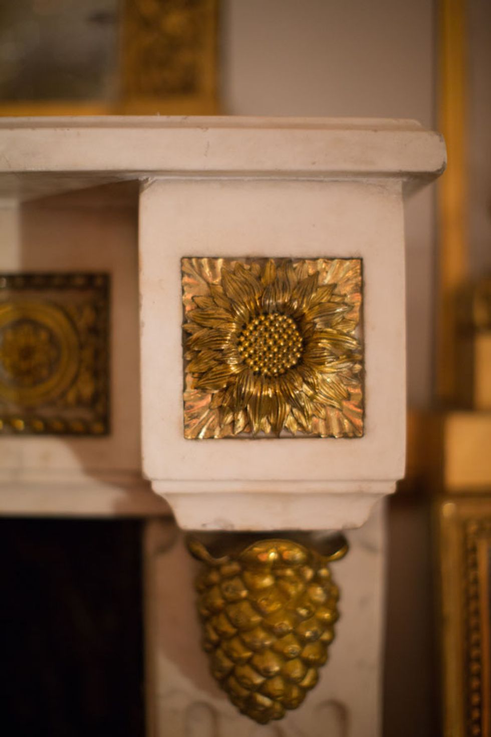 “Neoclassicism is a very precise architectural system that doesn’t like when you start moving things around,” says Chapman. The work of gilding, with its labor-intensive processes of rabbit-skin gluing, gessoing, sandpapering, and gold leafing, was also an exhaustive feat. And sourcing and restoring the full complement of antique side chairs and armchairs, arranged symmetrically according to the architecture, was also a lingering process, as museum historians tend to be sticklers for accuracy. All this grandeur at the expense of the room’s less dignified alter ego? “We’re not displaying the space with that particular function in mind,” says Chapman, with a grin. “At least not yet.”