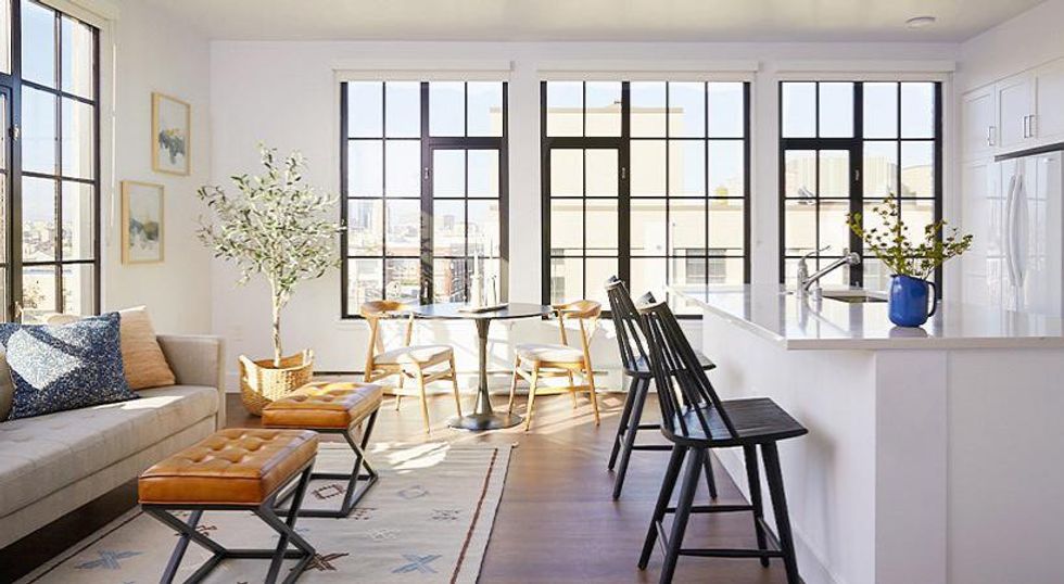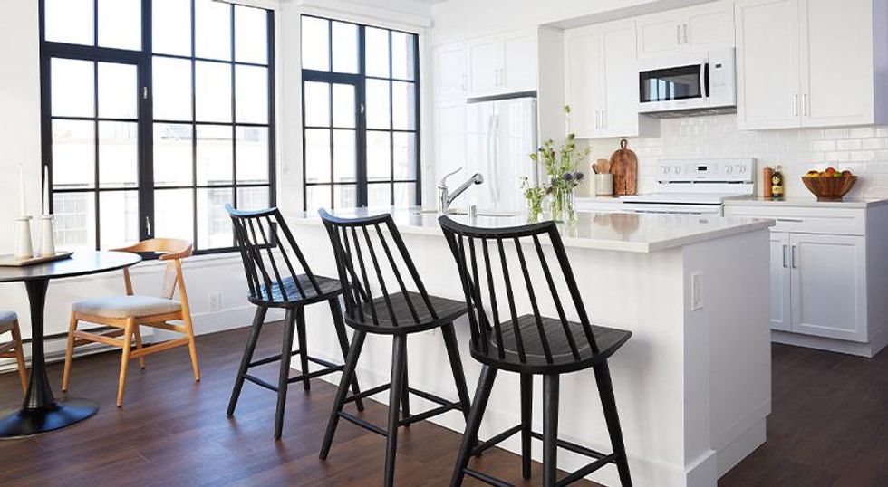 The apartments themselves aren't too shabby, with studios, one- and two-bedroom residences, and artist and maker lofts available. Designed in a modern black and white palette, the spaces all have open floor plans and high, warehouse-style windows that both lend an artsy appeal and shed ample natural light to inspire creative vibes.