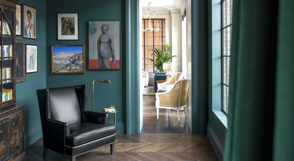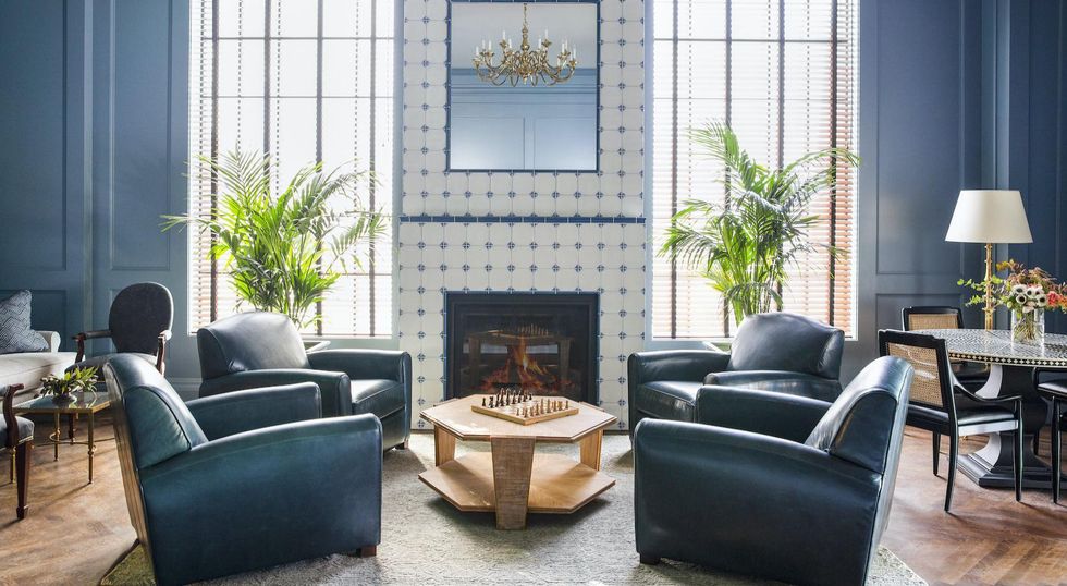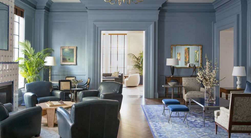 Housed in a large brick building at the corner of 18th and Bryant, The Madelon has a number of resident lounges with plush seating, tiled fireplaces, a curated art collection, and glittering chandeliers. There are landscaped private gardens, a roof terrace and outdoor entertainment space, a gym stacked with Pelotons, and an attended lobby with concierge services by Alfred.