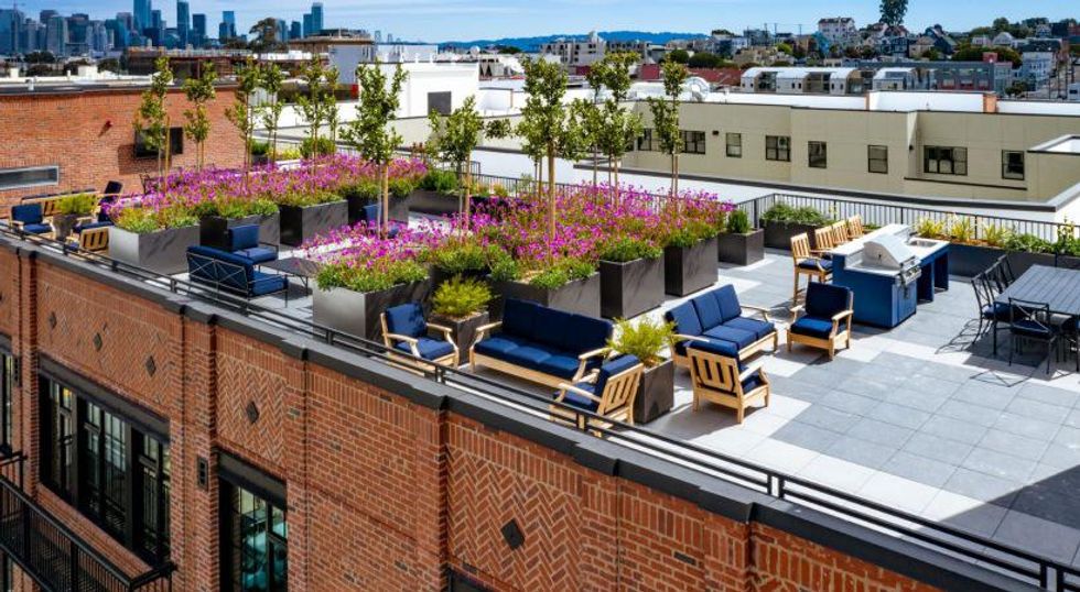 The updated complex has a mix of bright homes, work lofts, and ground floor retail; stylish public spaces for hanging out; and views of Bernal Heights and Sutro Tower.