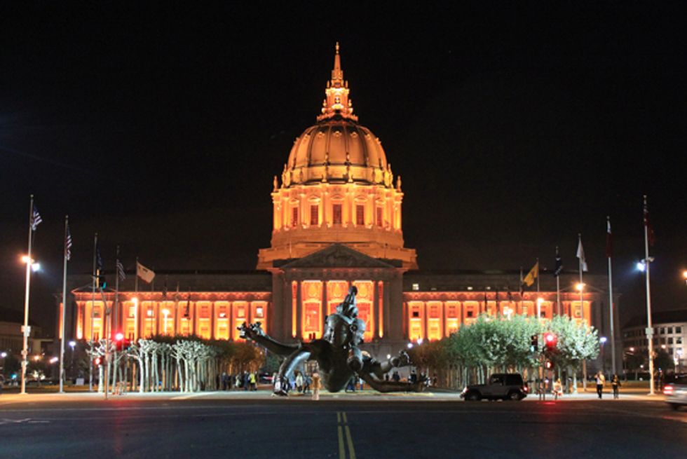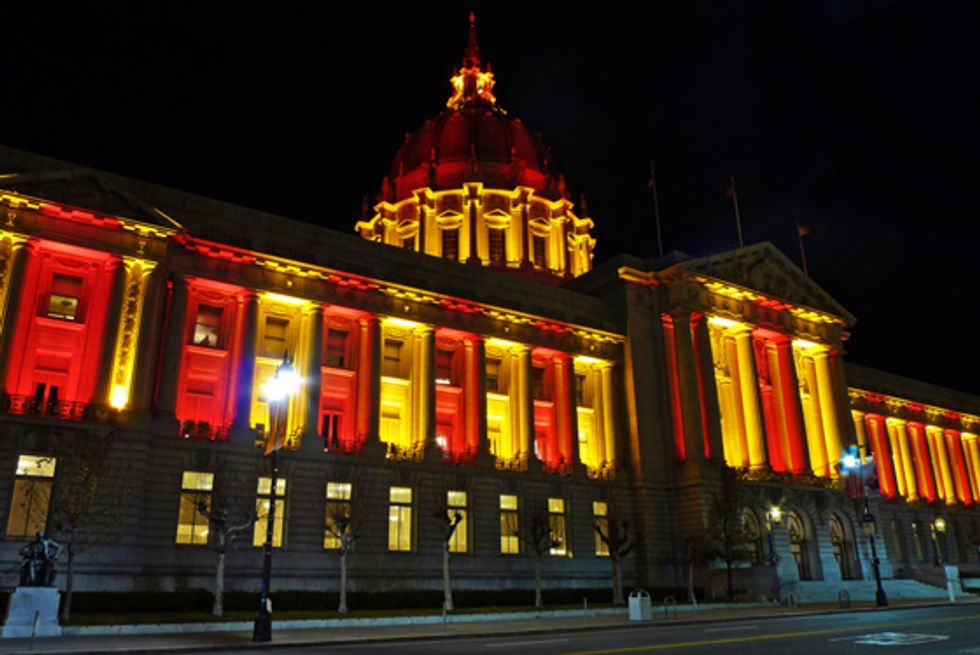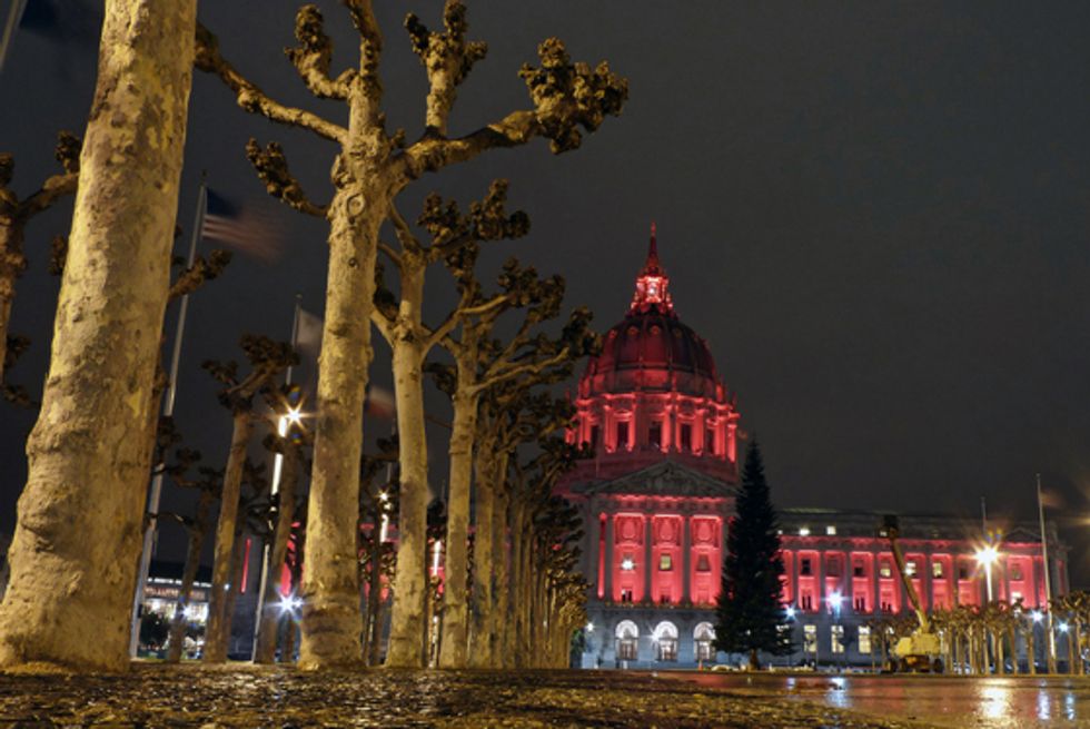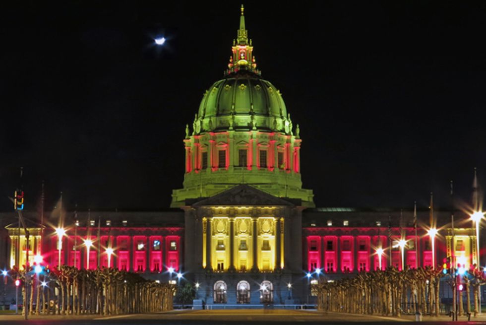 Depending on the time of year, City Hall is bathed in a variety of different colored lights for numerous special occasions, with some colors being more obvious than others.