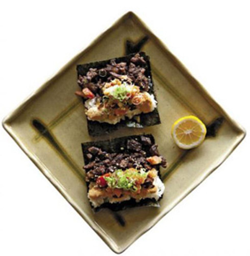 | Pork Banh Mi “Cilantro is not easy because it can make some reds go soapy or vegetal. A Languedoc Rosé would brighten up the flavors and play up the roasted pork.” Our pick: 2009 Mas-Des-Dames Coteaux du Languedoc Rosé ($12 at D&M Wine & Liquor, 2200 Fillmore St. at Sacramento, 415-346-1325, dandm.com) | Salt and Pepper Calamari “Go with Fino sherry, which has a saline quality and can handle the high acidity if you add lemon. Instead of fighting the citrus, it'll shake hands and hang out awhile.” Our pick: El Maestro Sierra Fino ($15 at K&L Wine Merchants, 638 Fourth St. at Brannan, 415-896-1734, klwines.com) |