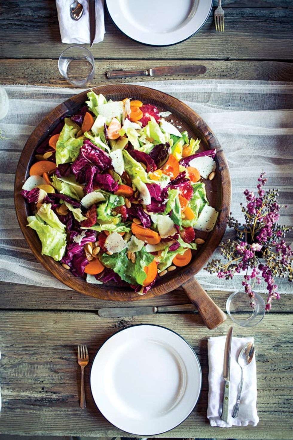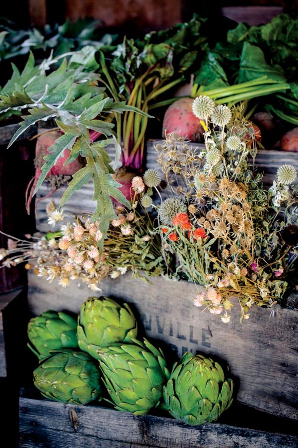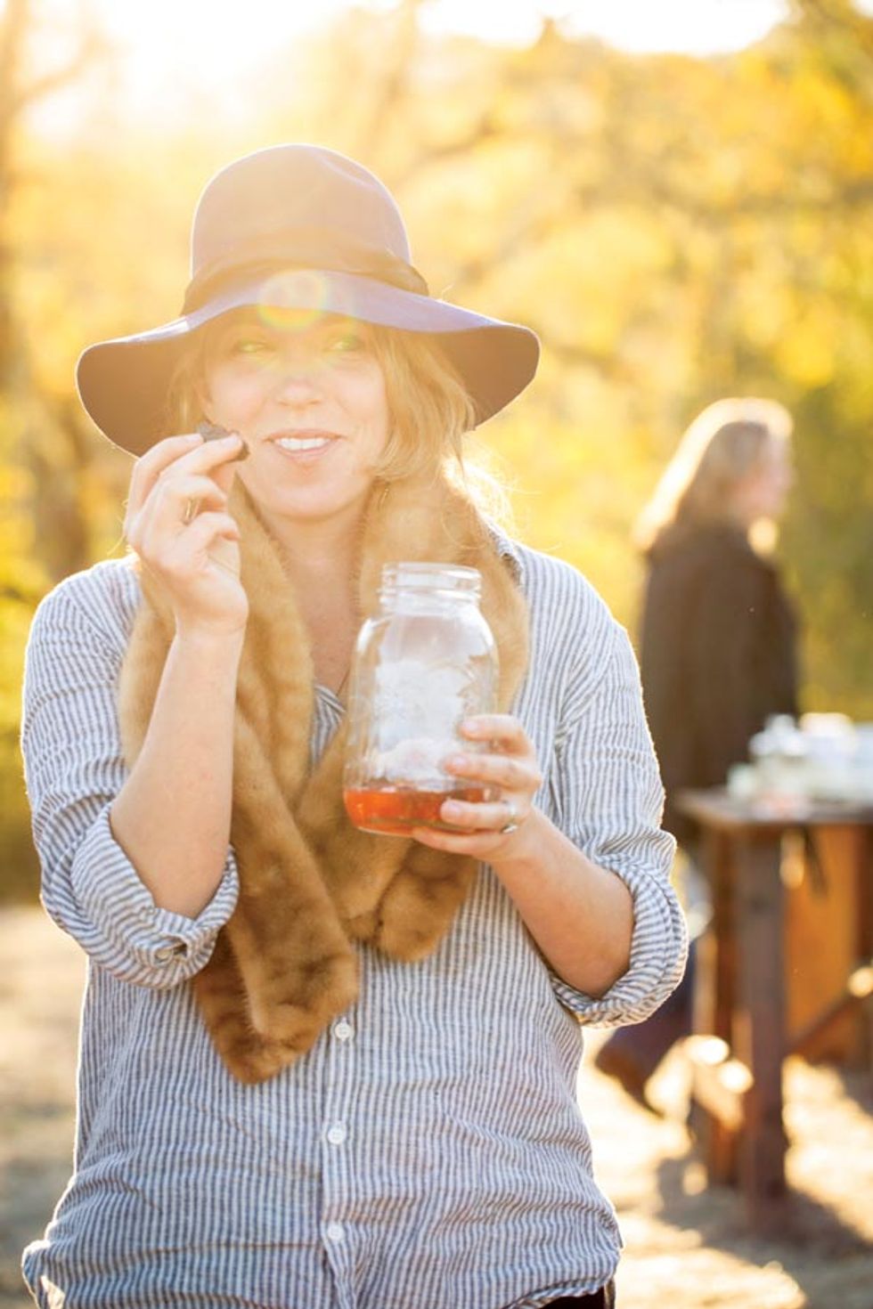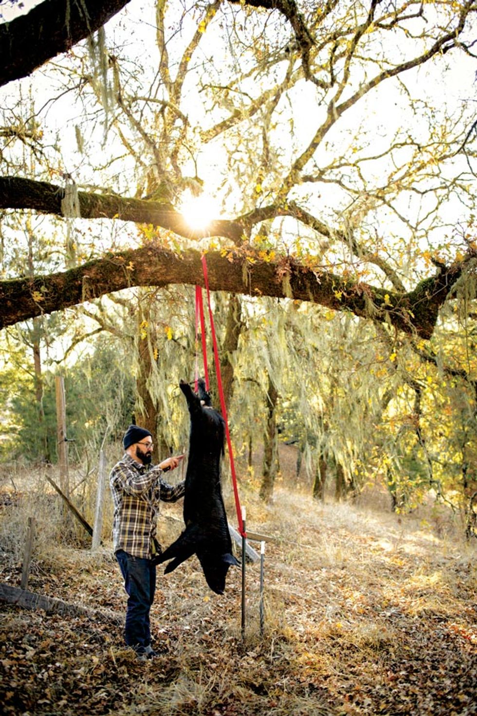 It was this man and his new pantry staple that inspired our own hunt, and the latter was sprinkled at the forthcoming communal supper, which my husband Hal and I hosted at our home in Healdsburg. As food lovers, we knew that it was a once-in-a-lifetime opportunity for us to learn on a visceral level about our local food chain. A locavore philosophy guided the occasion: Everything from the alpaca throws to the persimmons that went into making the chandelier were sourced from the Healdsburg area. A celebration of the region’s bounty called for notable dinner companions. So, we enlisted a James Beard–nominated chef, a local farmhand, an organic rancher, and others to join us for a potluck. They came and filled our plates with homegrown morsels and our glasses with local wines. We even found ourselves a boar hunter.