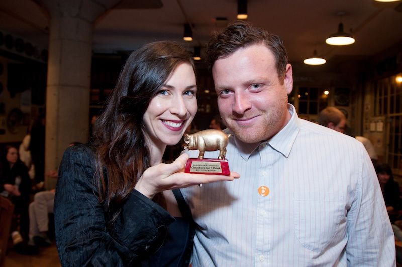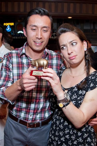 7x7's Piggy Awards 2013: restaurant publicist Tom Walton (Fortune PR) and 7x7 senior editor Schuyler Bailey