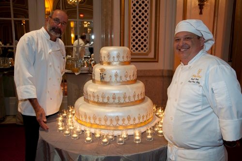 Beat Wirz, the Palace Hotel's Executive Pastry Chef, with Russell Costa, Pastry Sous Chef, and their beautiful wedding cake