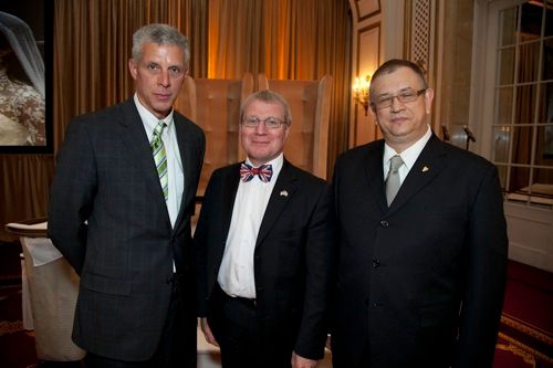 7x7 President Todd Sotkiewicz, British Consul General Julian Evans, and Clem Esmail, the General Manager of the Palace Hotel