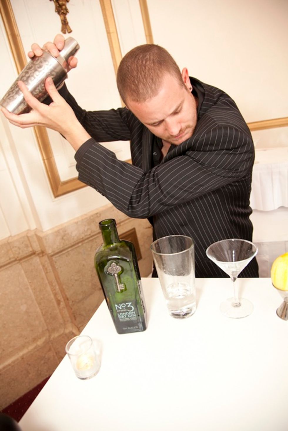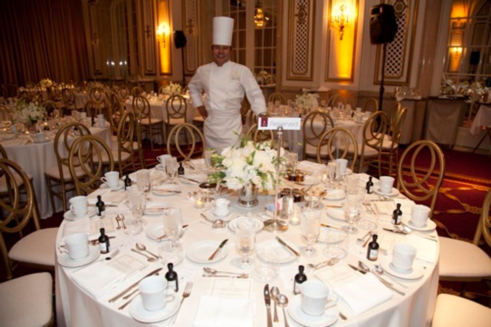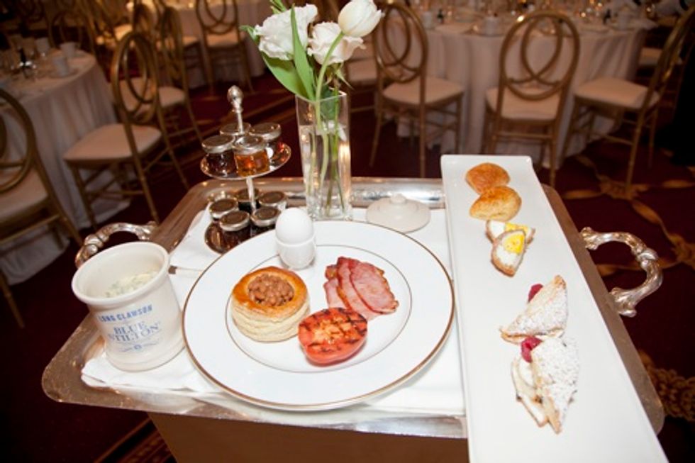 Guests arrived as early as 8:30 a.m. for 7x7's Royal Wedding viewing and breakfast at the Ralston Ballroom of the beautiful, historic Palace Hotel. There was an open bar featuring fabulous libations such as the sparkling King's Ginger Royale, made King's Ginger Liqueur and La Marca Prosecco, and the classic No.3 London Dry Gin Martini made with the King's Ginger and capped with an Earl Grey saffron foam, all served by award-winning mixologist Russell Davis.