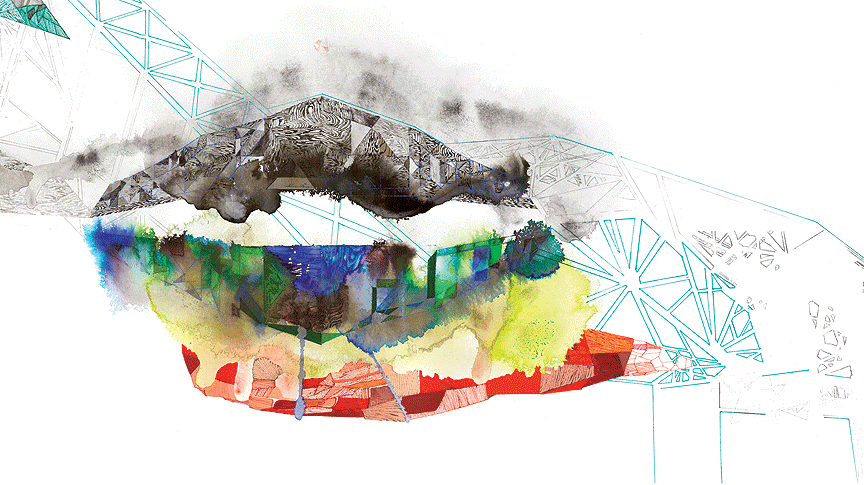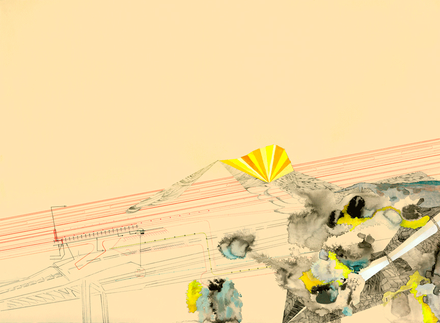 Working with the theme of place, Hughen and Starkweather's collaborations investigate the patterns and complexities of spaces that act as arteries and thoroughfares, each researched using current and historic photographs, maps, and data. The resulting artworks embody unique forms, simultaneously surreal and rooted in reality.