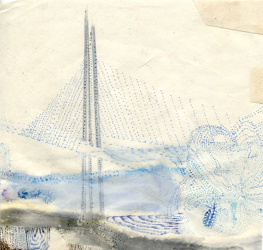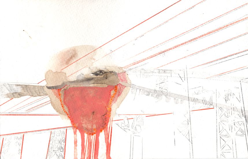 "Approach, Transition, Touchdown" is a series of prints, paintings, and drawings of the bridge based on maps, diagrams, photographs, and architectural/engineering drawings. Not content to watch from afar, Hughen and Starkweather went deep in the trenches, touring the construction area several times and meeting with engineers and architects involved with the project. Long in the making, this exhibit is especially significant because November marks the 75th anniversary of the opening of the Bay Bridge in 1936. It's also a nod to the new bridge—slotted to open in 2013—which will be the most complex engineering feat in the history of California and the largest self-anchored suspension bridge in the world.