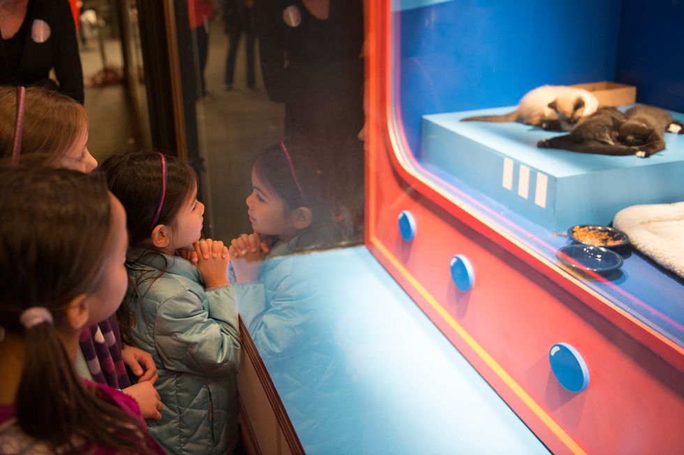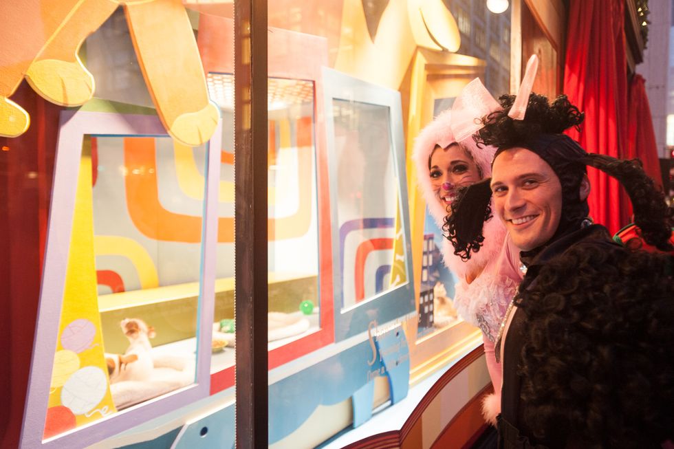 Last Friday, the San Francisco SPCA and Macy's revealed their 27th annual Holiday Windows display with help from the cast members from Beach Blanket Babylon on the corner of Stockton and O'Farrell. Holiday shoppers will be joyously distracted by the ridiculously cute puppies and kittens frolicking in the windows. The theme this year will be a spin on the "Iconic Holiday Celebration windows" from 2012, with fun additions and new surprises to the iconic Thanksgiving Day parade floats, Union Square Ice Skating, and more.