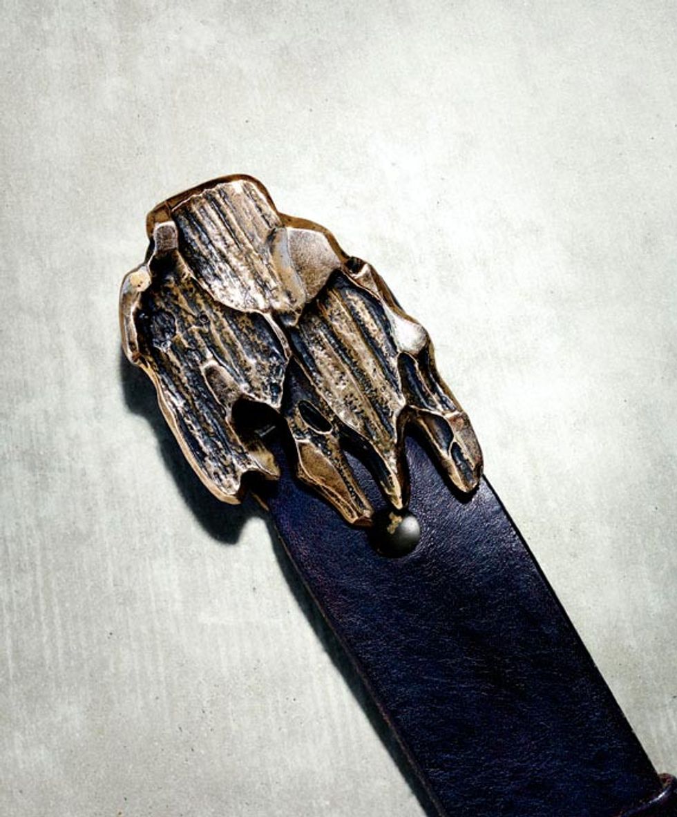 “Oakland is still the new frontier,” says design pioneer Basil Racuk, who launched his eponymous label in 2008 and credits the city’s “urbane and homespun” spirit for influencing his utilitarian-chic bags and accessories. All of Racuk’s leather goods are handmade in his appointment-only West Oakland studio, including this Eastman belt with a Jeffrey pine bronze buckle.