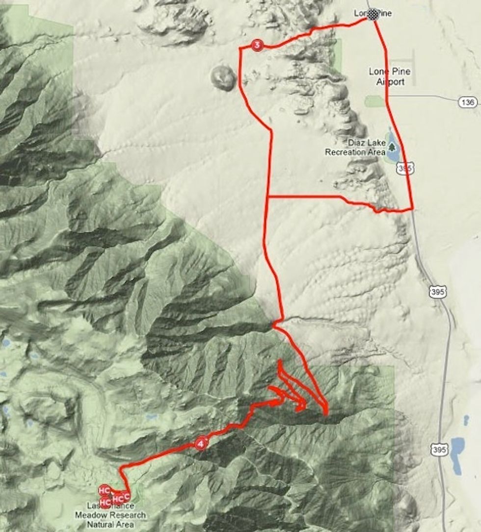 We’ll set out west from downtown on the Whitney Portal Road to get a satisfactory warm-up, climbing up through the Alabama hills (rated a cat 3 climb) and then making a left on Horseshoe Meadow Road. As we look head toward the clearly delineated switchbacks on the slope ahead a sense awe and anticipation (or perhaps dread) will likely well-up for what so obviously lies ahead.