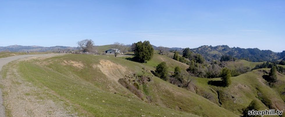 The Cazadero Highway is nothing more than a quiet country road, and meanders idyllically alongside beautiful Austin Creek for six and half miles until reaching Cazadero itself. Continue riding straight, creekside, onto King Road where the grade begins to gently rise until the at the 10 mile mark it begins to get interesting, progressively getting steeper as we go higher. Stunning vistas begin to open up as we get out of the tress and up on the ridge itself. We max out up here at 1600 feet and enjoy a rolling descent down to the giant oak tree at the junction with Tin Barn Rd., where King Ridge Rd. ends. A good spot to stop and fuel up for the second half of our journey, an almost mirror image of the ride profile so far.