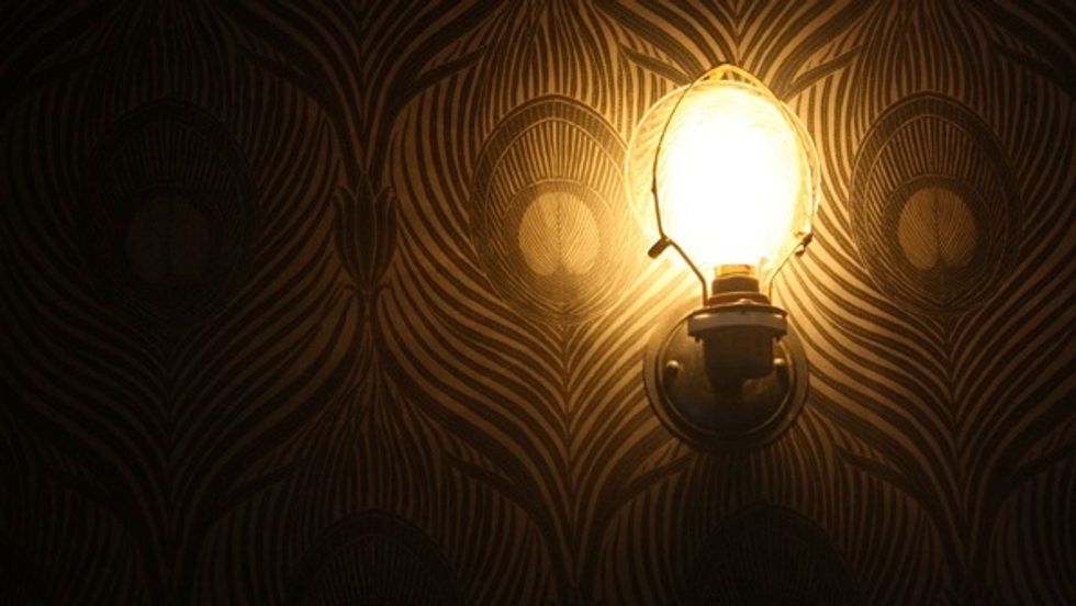 Because Muni was being Muni, my friend Lindsey was running late, so I sat at the bar (which looks like yellow marble being illuminated from underneath) and observed the now-opulent space that used to be the divey biker hangout, the Ace Café. Well heeled and good looking patrons mingled with each other under the vintage ceiling fans and pressed tin ceiling. Velvet wallpaper begged to be petted while electronic music ranging from Dubstep-lite to Portishead-heavy emanated from unseen speakers. The whole place reminded me of the top floor of the Armory, a beautiful Victorian citadel where sex parties happen regularly and are broadcast on the internet. According to the barkeep though, there won’t be any domming, subbing, or fucking going on at the Armory Club. I asked if Kink was gonna film Public Disgrace here like they’ve done in so many bars across the city. The answer was no.