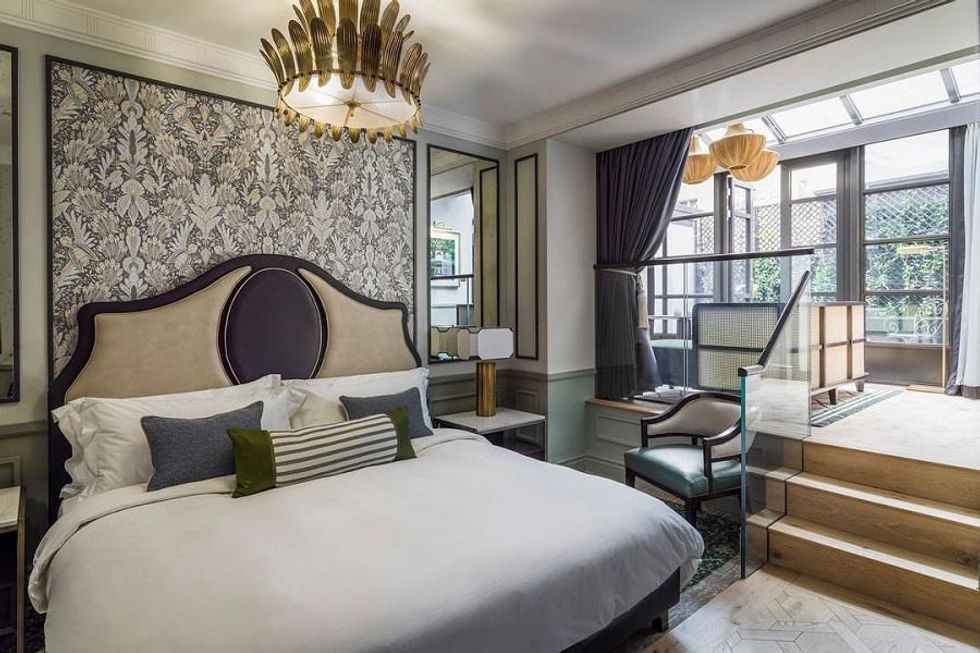 The brand new One Hundred Shoreditch is a stylish send up to abstract art and relaxation in London’s Shoreditch. Formerly the city’s Ace Hotel, the independently owned Shoreditch has remade the public spaces entirely with sculpture, textiles, and color. Upstairs in the guest rooms, a more minimalist aesthetic prevails, with clean white linens and black-and-white tiled baths. The property currently has two bars, the moody, bunker-like Seed Library in the basement, and the cheerful lobby bar. A third lounge on the rooftop will open soon to views over East London, while a coffee bar and British seafood restaurant Goddard and Gibbs round out the amenities on the ground floor.