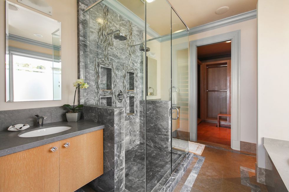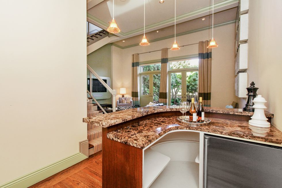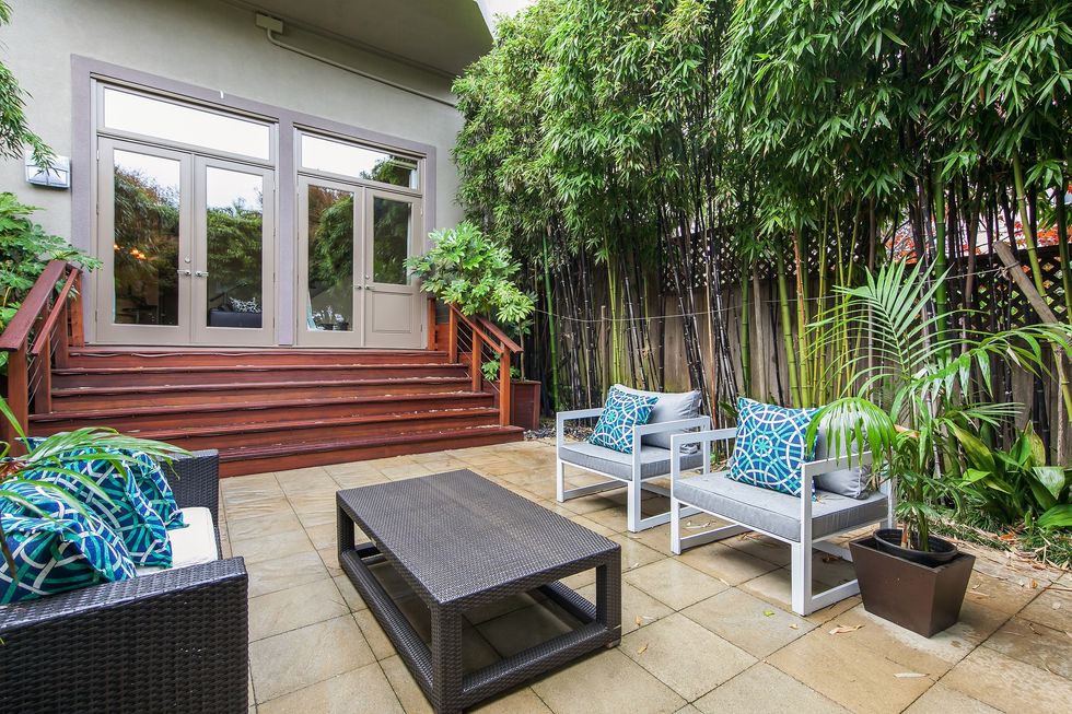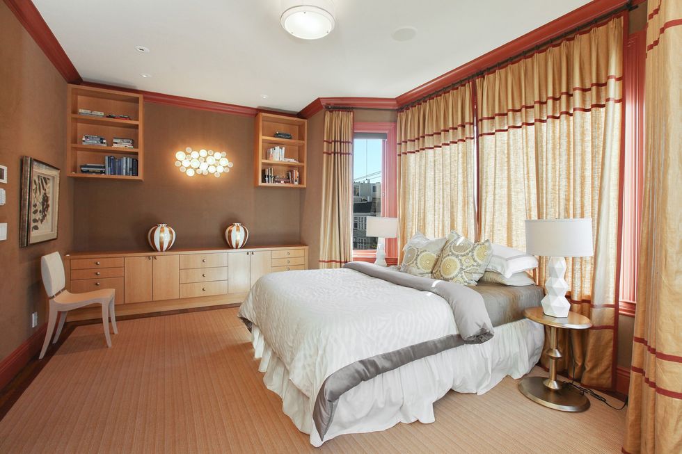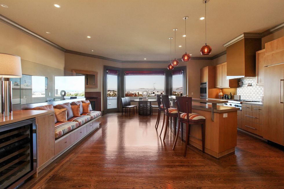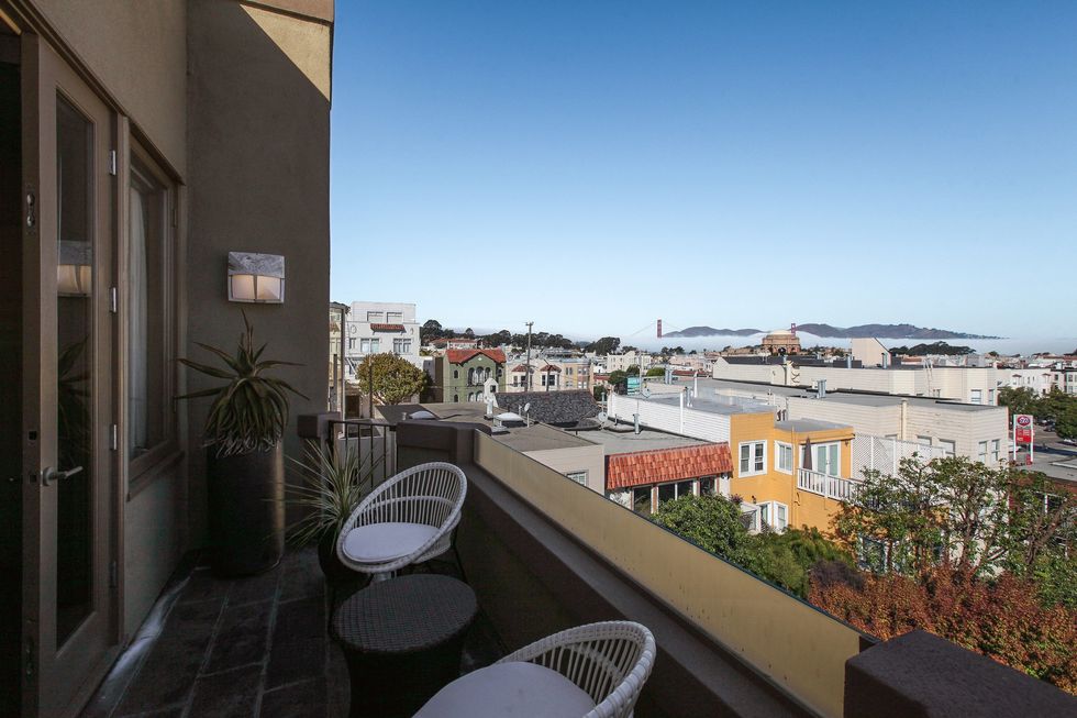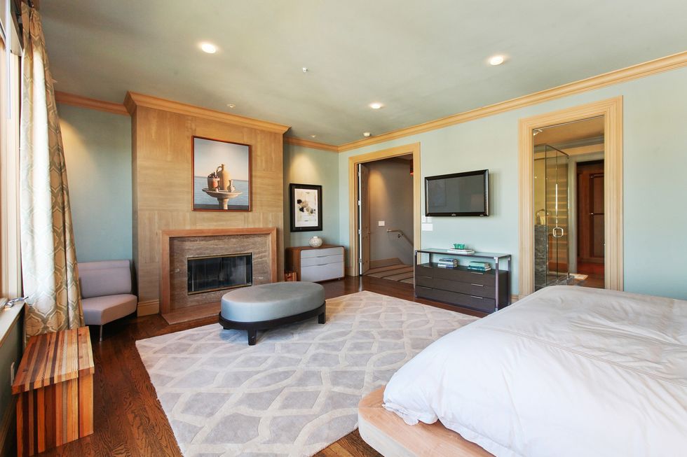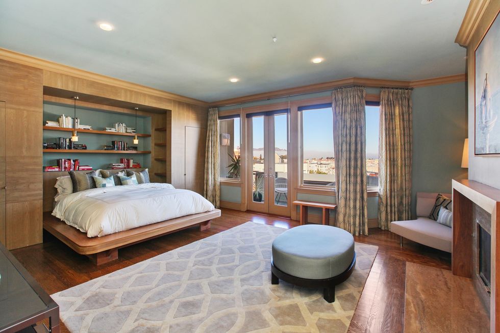 But of course, the real luxury is saved for the homeowners. Upstairs, the master suite features a built-in bed frame, cozy reading nook, and balcony with views of the Golden Gate Bridge and Palace of Fine Arts. A second wood-burning fireplace is reserved just for you, which, along with the enormous jetted tub and two-nozzle shower in the master bath, allow for some much-deserved R&R after all that partying. The upper level also features another two other bedrooms that open out onto a deck, as well as one and a half bathrooms.