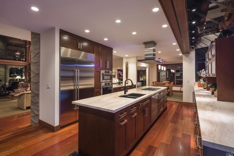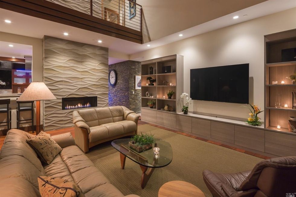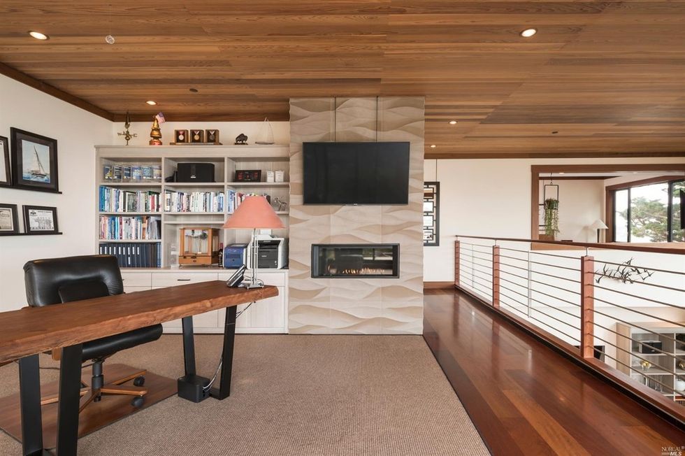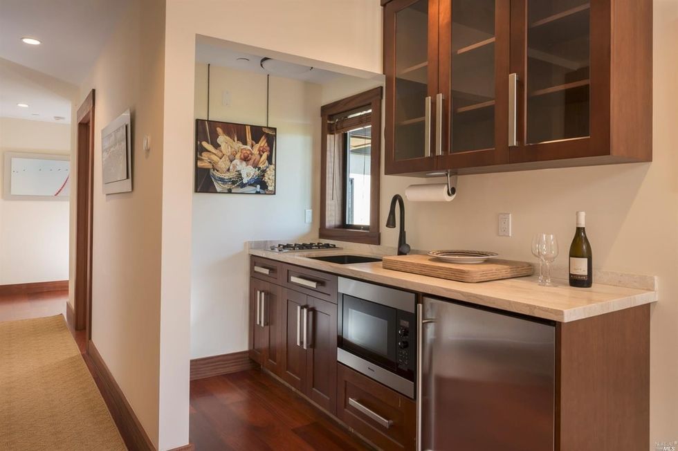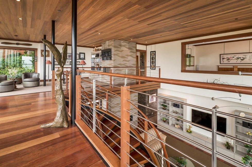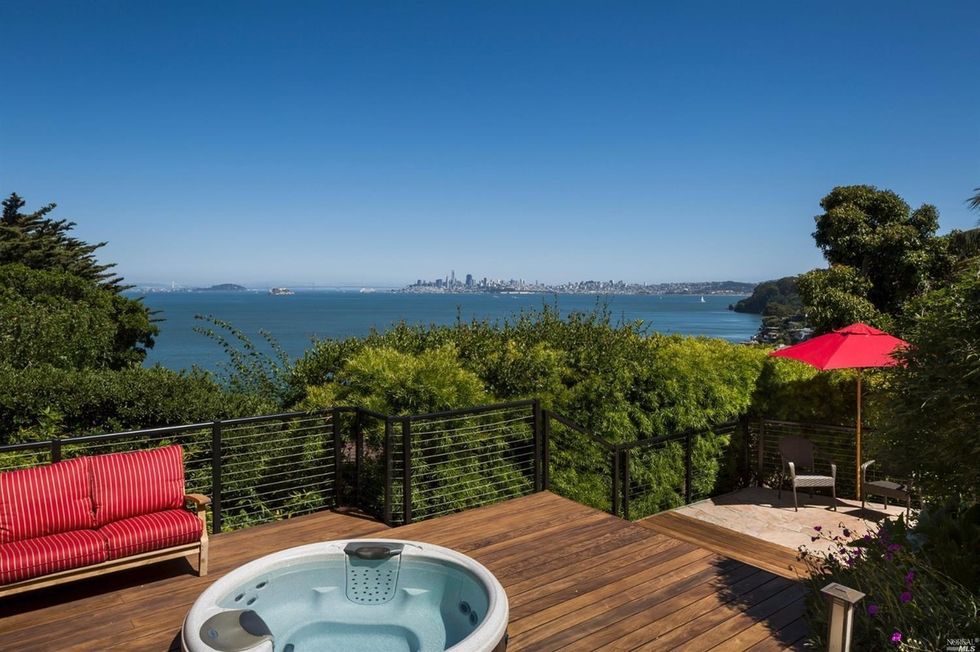 Located in the Banana Belt, this stunner exudes eminently exotic vibes. Rebuilt from the ground up in 2014, the residence spans three glorious levels, each with a breathtaking panorama of the water, Bay Bridge and San Francisco. Multiple decks and patios grace the abode, creating an airy indoor/ outdoor ambiance; while beautiful, natural design elements permeate the space—a spiral staircase, warm alabaster and wood palette, and neutral marbles.