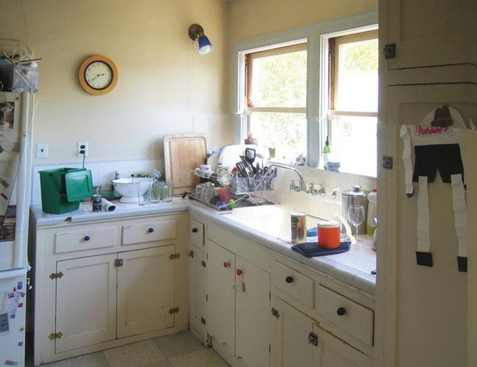 BEFORE: The existing kitchen was probably original to the home. The painted cabinets were in need of replacing, there was very little counter space, and there was no dishwasher.
