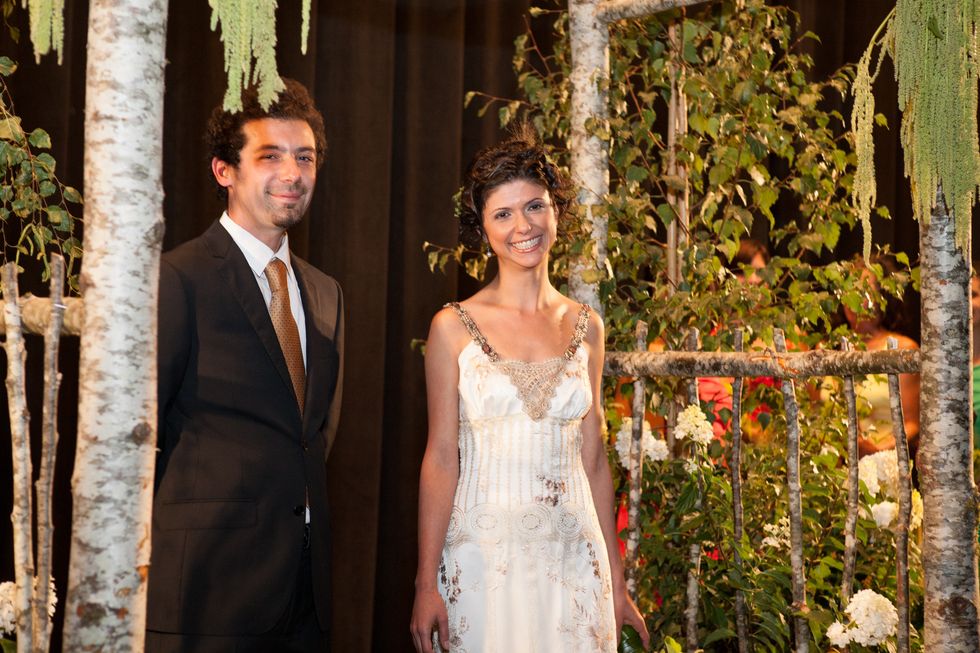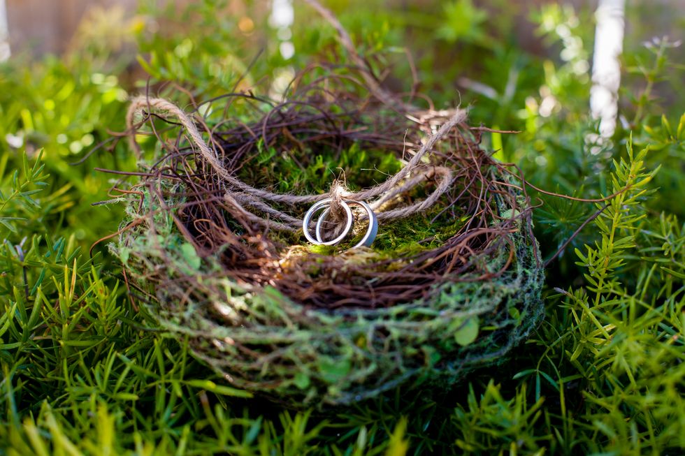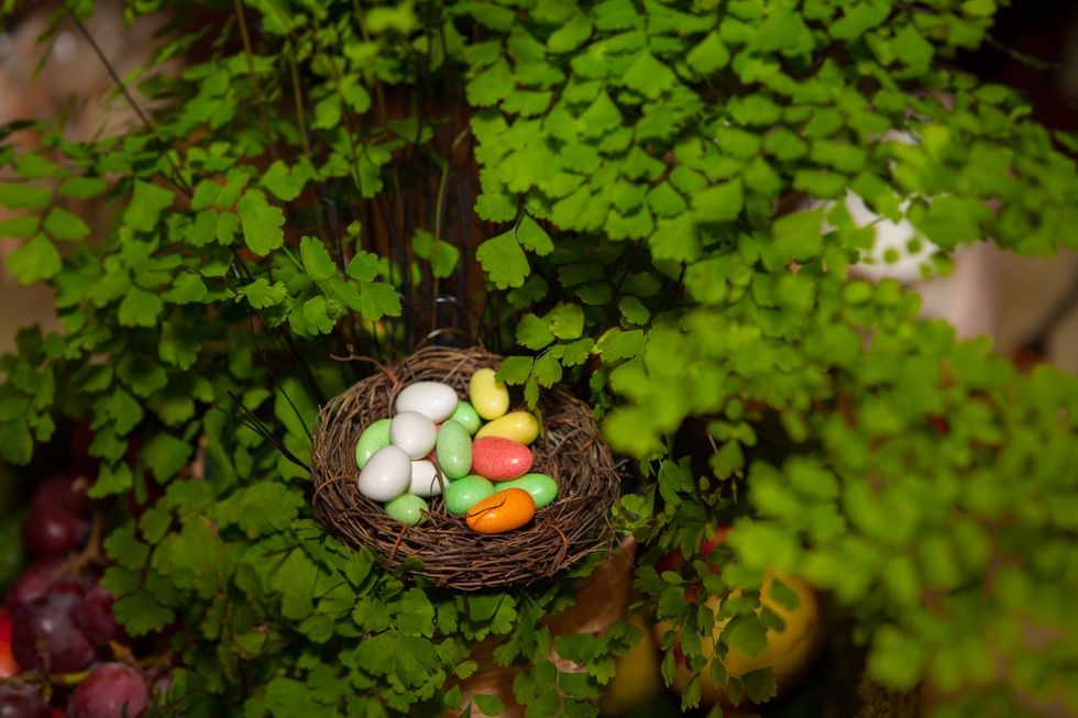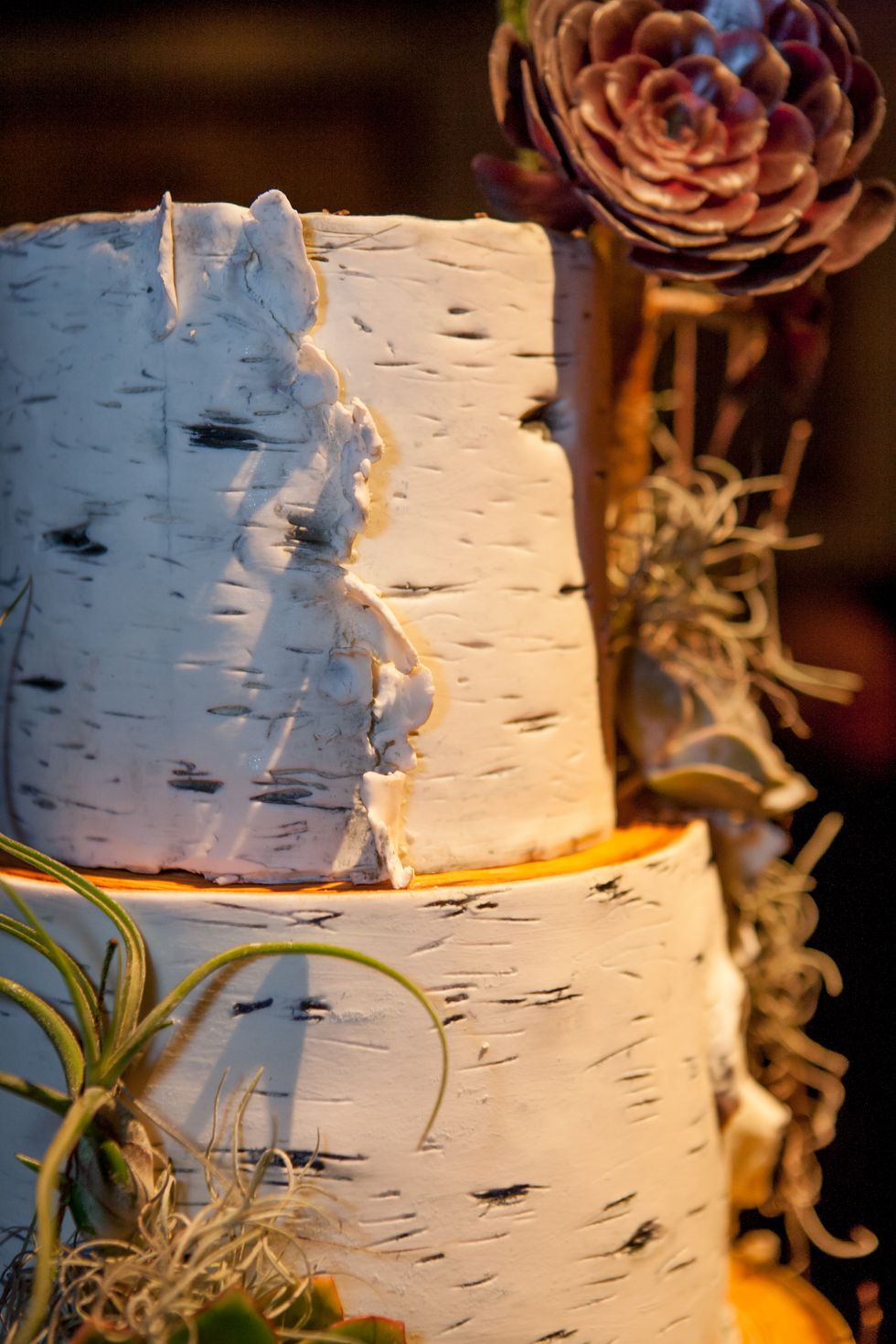 Natural elements branched harmoniously into the reception decor as well. Vibrant succulents embellished the birchwood-inspired tiered cake, and handcrafted birds nests perched atop each table. The couple sprinkled egg-shaped candies from Iran into these centerpieces to pay homage to their rich culture.