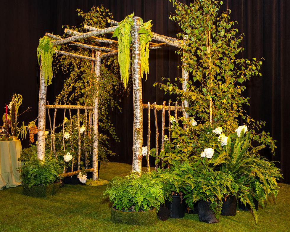 The couple wanted to incorporate original ideas and cultural details into the celebration, as the bride's immediate family members are first-generation emigrants from Iran. Shuka had a clear vision of the ceremony, which included her walking down an awe-inspiring aisle made of real grass. Per the bride’s request, the space was decked out in 3,000 square feet of real grass, fifteen live birch trees, and hundreds of plants that included a gorgeous arrangement of hydrangeas and ferns. The couple exchanged vows under a natural birch wood arbor, giving the outdoorsy atmosphere a unique handmade touch.