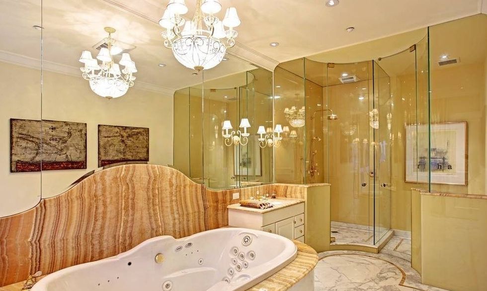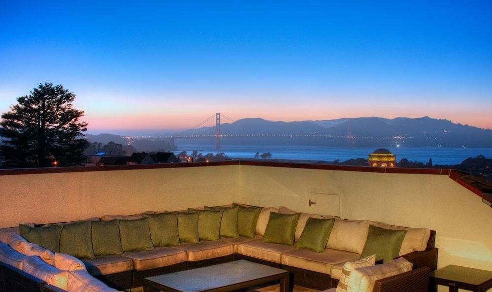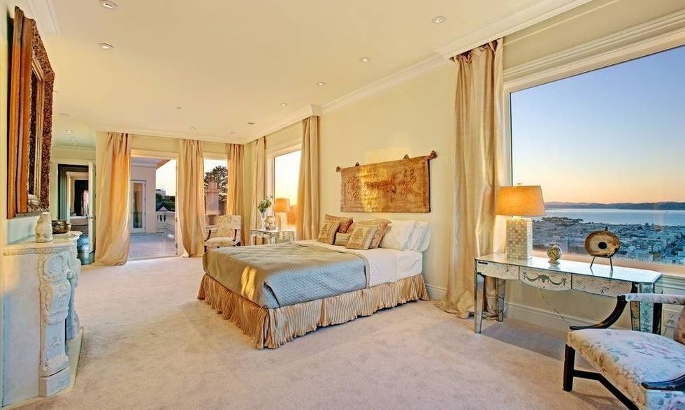 The rest of the property is equally grand, from the sprawling, formal dining room and reception hall, to the special bedroom for an au pair, five marble terraces, cast bronze balconies, two laundry rooms, right down to the sweeping view of the Golden Gate Bridge and the Bay. You'll even get a few things we didn't know still existed in houses, like (three!) powder rooms, a cloak room, and a salon. There's also a chill room with big enough for a few pool tables and flat screens, a music room, a wine cellar, a wet bar, a spa bathroom, and a home gym. If you're having trouble getting around, have no fear: There's an elevator that goes to all floors.