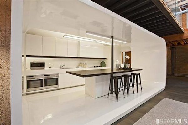 The incredible home combines natural woodwork with futuristic design. In fact, it's pretty easy to imagine you're living and cooking inside a spaceship: the kitchen and two bedrooms are all nestled into pod-like white spaces. Luckily, there's also giant skylights everywhere and a rooftop lounge (with views of the Bay Lights) to remind you that you're on Earth.
