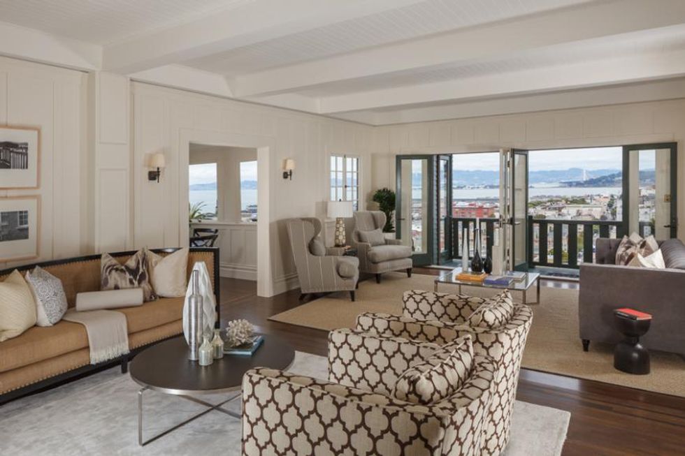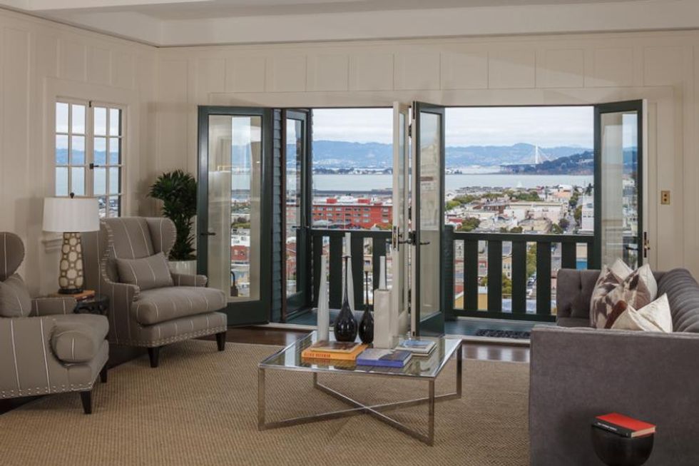 The Maybeck-style design includes open floor plans, beamed ceilings, native redwood, expansive windows, and hand crafted details. And don't forget about what lay outside those perfectly decorated windowsills: dramatic views of downtown SF, the Bay Bridge, the Golden Gate Bridge, and Alcatraz.
