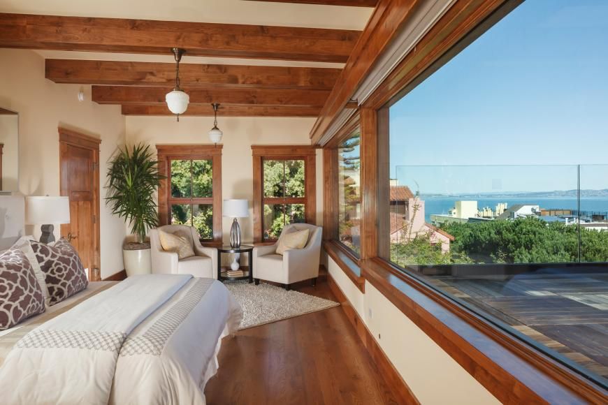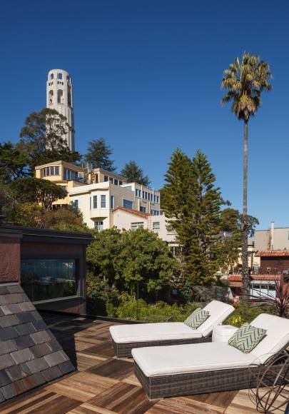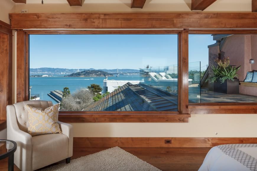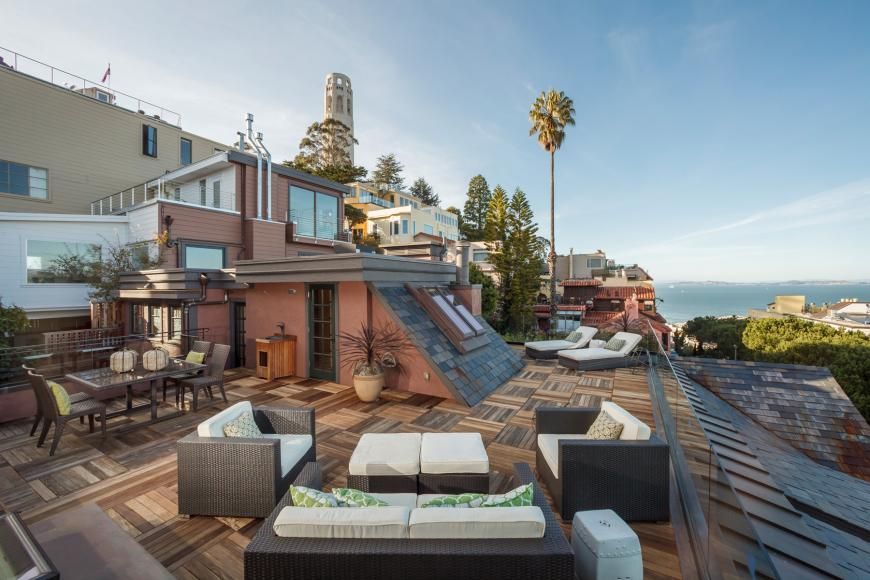 Located on the sun-swept, eastern slope of Telegraph Hill, this circa-1900 mansion offers gorgeous 360-degree views of the Bay Area from three different floors. The master suite - which takes up the entire top floor – has immense picture windows, and a wraparound terrace that lets you lounge while you admire Coit Tower, the Bay Bridge, and the little folk at the bottom of the hill. All while rather close property lines simultaneously let your neighbors admire you.