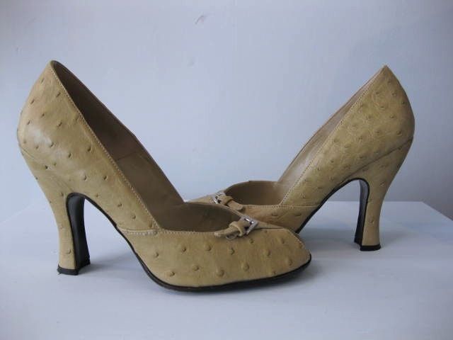 Prada Beige Ostritch Leather Peep Toe Pumps Size 8, $220