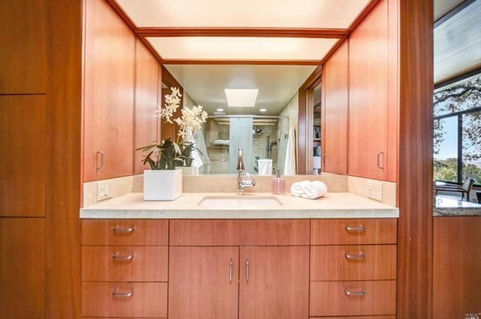 While ample land and level parcels are available here for building a legit Wine Country estate, the pair of petite structures on the gated property are perfectly livable homes for normal people.