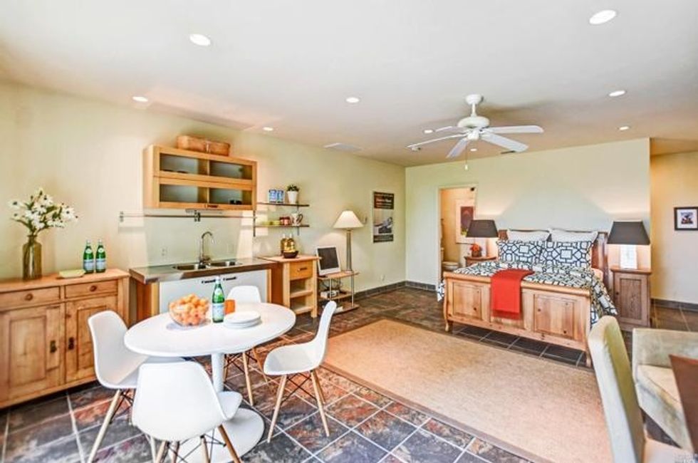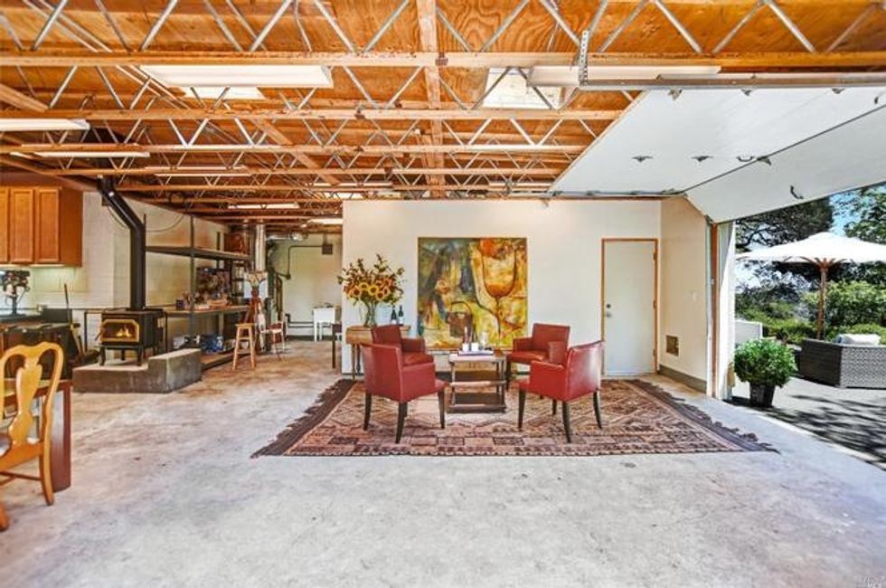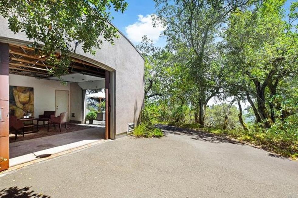 Situated on the southwest corner of the property is a studio apartment with workshop space. A wall of glass floods the space with natural light, making for the perfect creative retreat. The workshop has plenty of cabinets and could be used for anything from an art studio to a brewing facility. A temperature-controlled wine storage room here offers housing for thousands of bottles, which is perfect since you've got pinot noir, zinfandel, and a field-blend claret growing right on the grounds.
