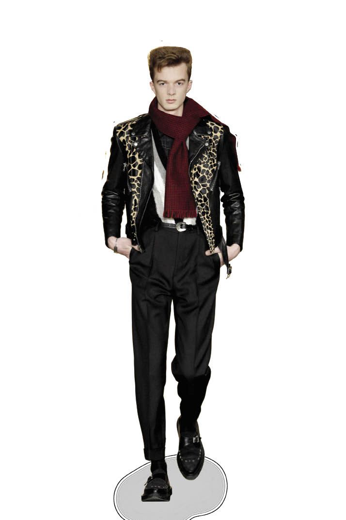 Look like you just robbed a thrift store? You’re right on trend. Work a multi-decade mashup with stiff biker jackets, rockabilly flair, polyester prints—anything goes.