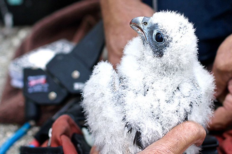 Two adorably fuzzy peregrine falcon babies, named Fiat and Lux, have made their home on UC Berkeley's Campanile tower. They took their first flight last week, but very sadly Lux died on Tuesday when she flew into Evans Hall. Pour one out this weekend for Lux. Read more.