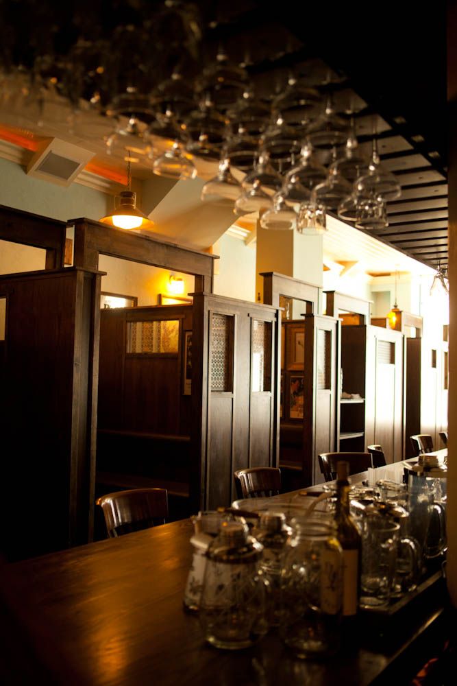 The extra effort of booking a table at Tradition gives drinkers access to two major perks. The first is getting to sit in one of the snugs, a style of high booth that was originally invented to allow women to drink in bars without fear of offending propriety. (In the older European pubs where they've survived, they've since become popular for romantic assignations.) Tradition's nine snugs are each themed around a different style of bar or drinking culture, including dive bar, tiki bar, speakeasy, English pub, and grand hotel. Though each snug's decor is fairly minimal at this point, with a couple of framed vintage liquor ads to represent the style, the owners plan to add more tsotchkes as time goes by. (The Irish pub snug is the most tricked-out at the moment, as one of the owners took a vacation to the Emerald Isle shortly before opening.)