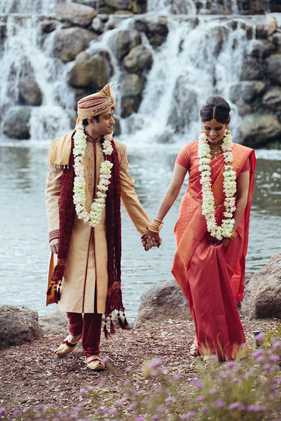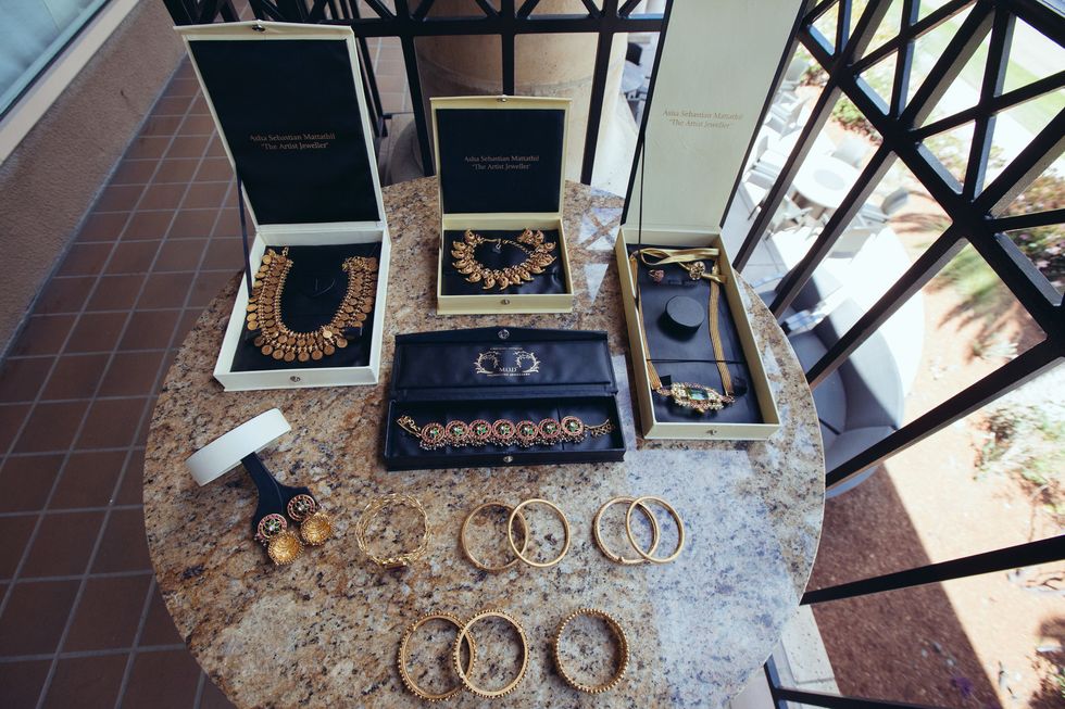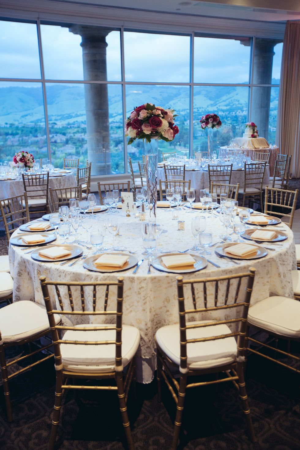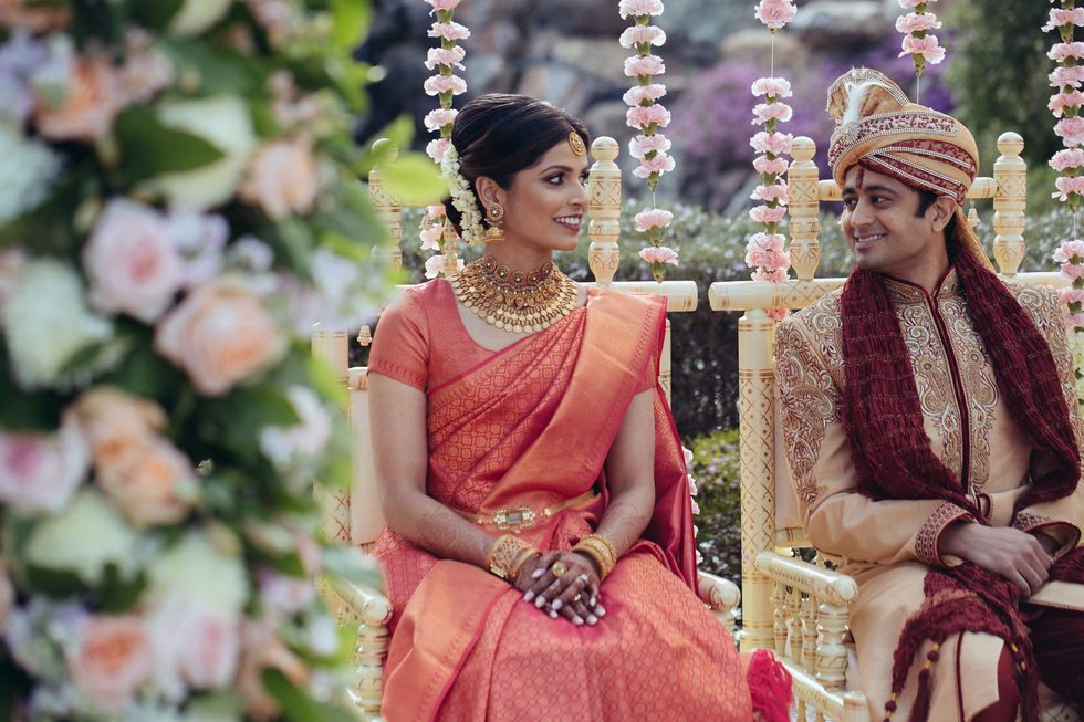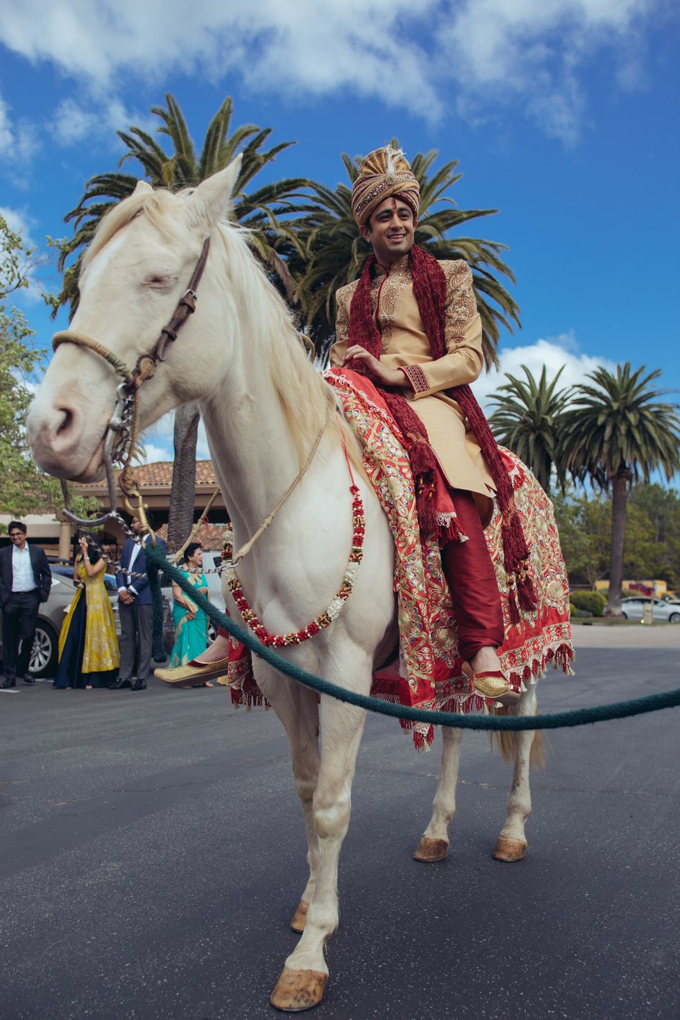 For the big day, they gathered at Silver Creek Valley Country Club in San Jose where they went all out in traditional Indian style, and as is the custom, there were multiple glamorous outfits and embellishments. For the ceremony, the groom sported gold and crimson, while Rajeev wore a lovely apricot hue and gilded jewelry.