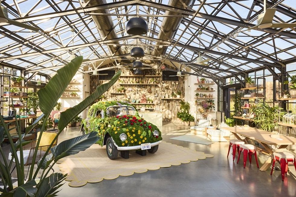 The immersive whimsy greets you at check-in, when you enter the giant, airy, glass-walled greenhouse reception area referred to as “The Commons.” In the center is a 1967 Volkswagen Beetle blanketed in greenery and flowers, with a license plate that says “Luv Bug” and a woodsy scent that smells like walking into a cedar forest.
