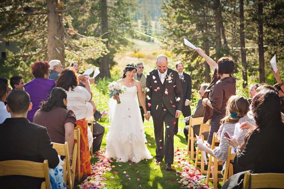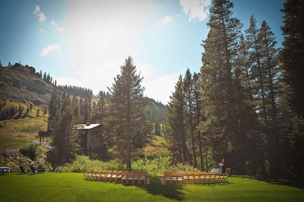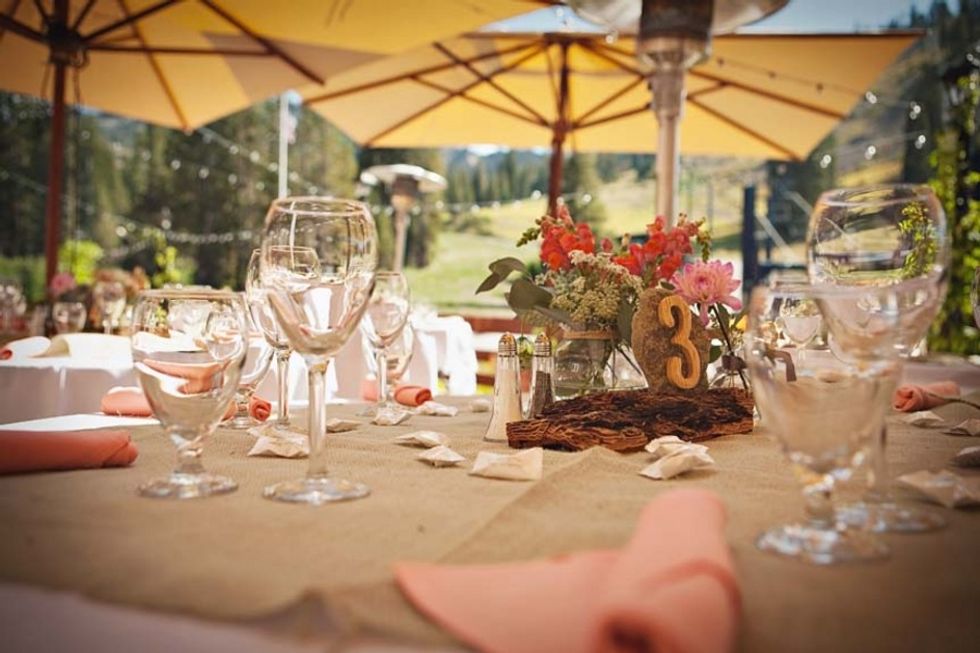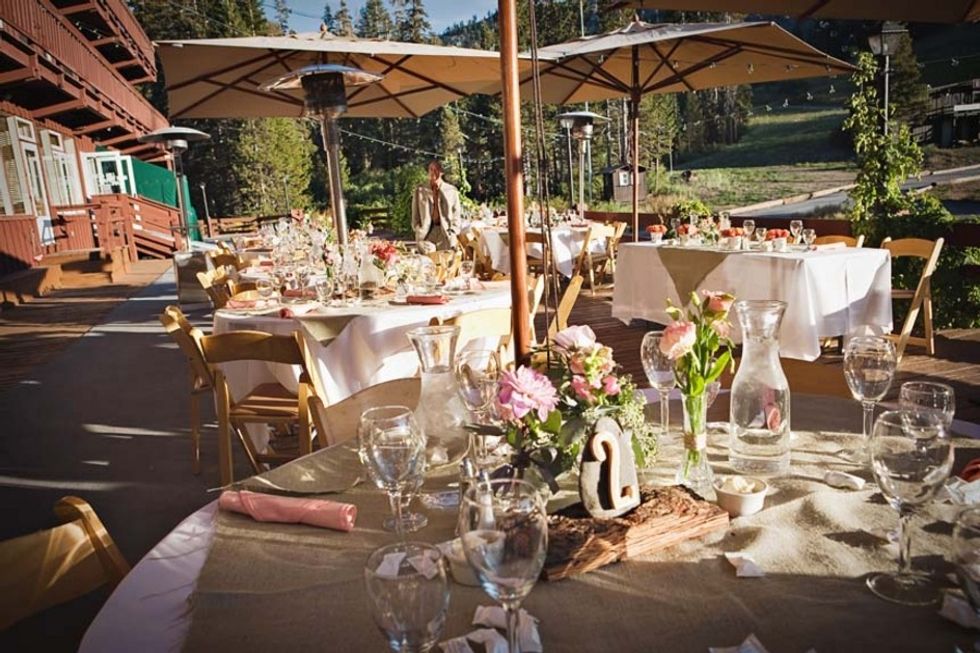 Larissa and Trevor shared their love with friends and family at an amazing Lake Tahoe wedding at the Sugar Bowl Ski Resort overlooking Norden and Ice Lakes in Tahoe. Larissa planned her colors to be pink, orange, sage and grey, and it blended perfectly for her early Autumn wedding. Vintage and rustic details spread throughout the wedding with a chairlift ride up to the top of Disney Mountain for a glorious overview of Tahoe for their cocktail hour. Following dinner, Larissa and Trevor sang to each other as a special surprise for all their guests.