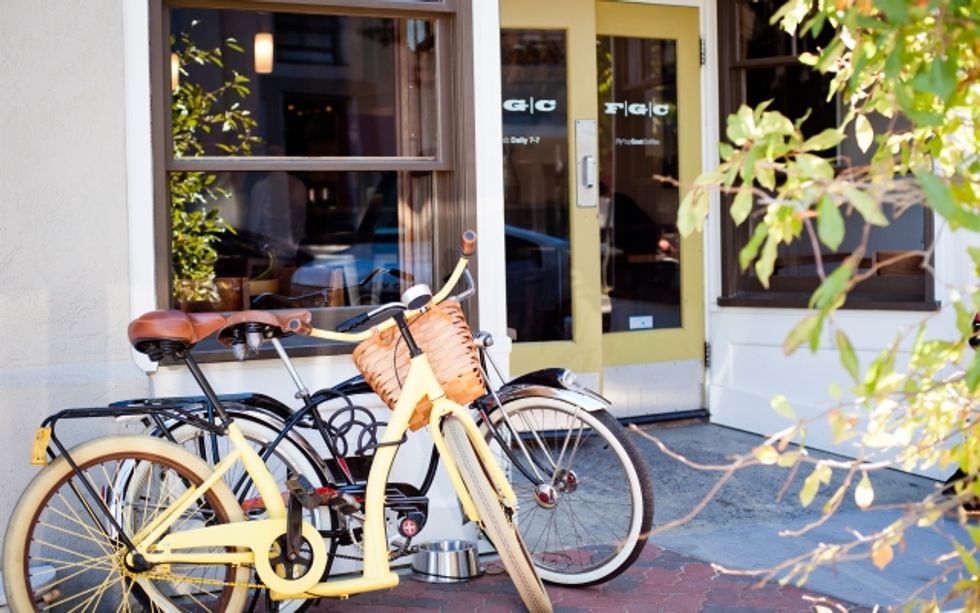 As this area is particularly conducive to group rides, we did this 52-mile ramble with Marin’s Mellow Motors Cycling Club on a recent Saturday morning. Our meet-up spot was at Flying Goat Coffee, located kitty-corner from the plaza. It’s an excellent spot for pre-ride fuel, with a good selection of pastries and sensational coffee. An early start time is recommended, when the roads are less crowded and the wine-tasters haven’t made multiple stops yet.