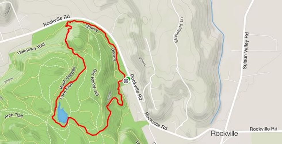 The rugged, volcanic rock hills of Rockville Regional Park offer a splendid hike through a timeless landscape of California blue oaks, brush chaparral, and seasonal wetlands. The route includes a couple of remote ponds situated in a delightful grassy valley, a hidden cave, and views of Mt. Diablo to the south, Elkhorn Peak to the west, and the Twin Sisters to the north.
