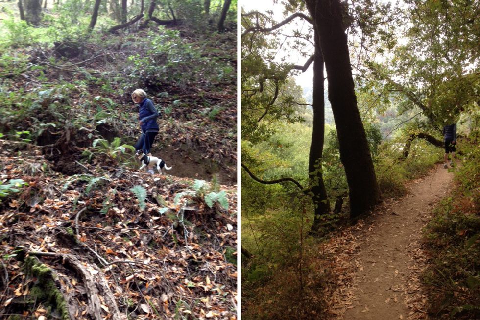 - As the road moves away from the lake, look for a trail down to the left that leads to a bridge across the creek. Cross the bridge and go left on the Gertrude-Ord trail. If you get to a junction of fire roads you’ve gone to far.