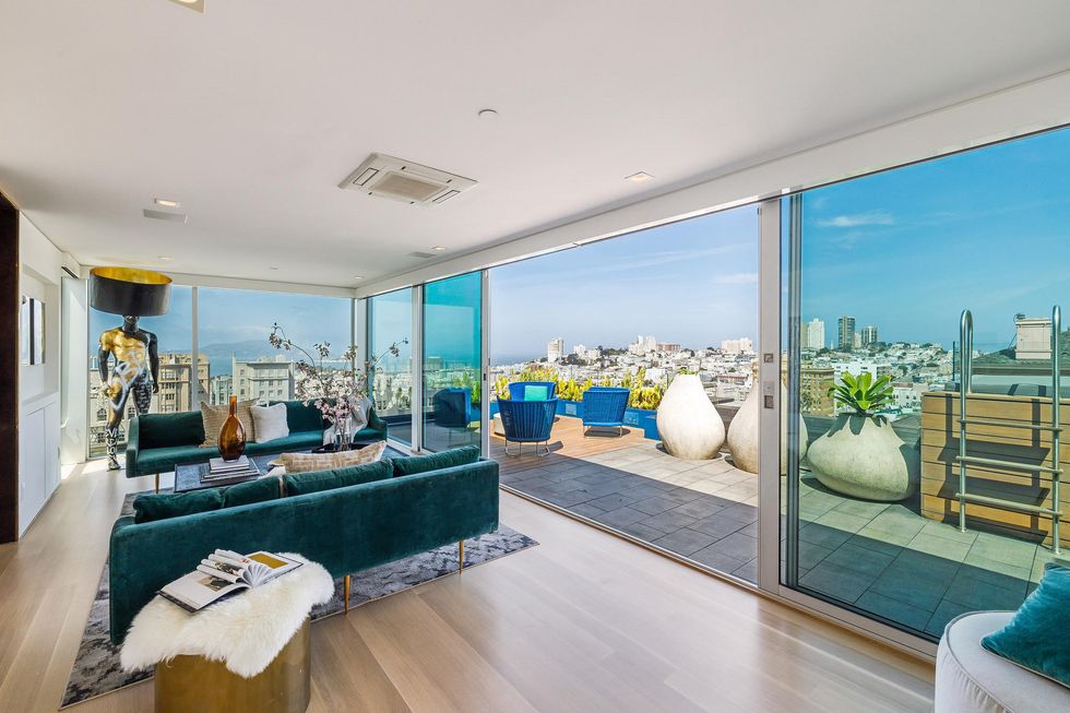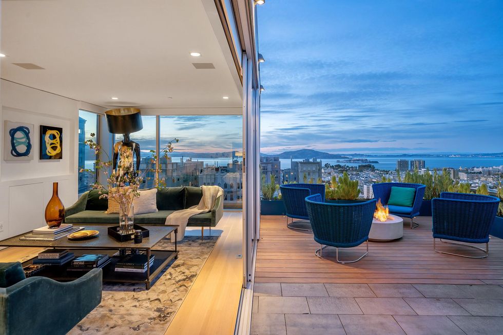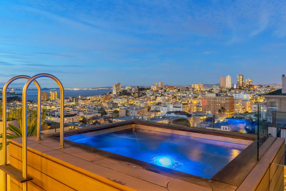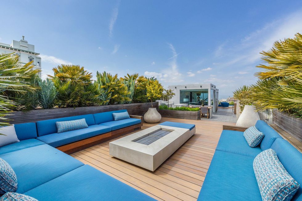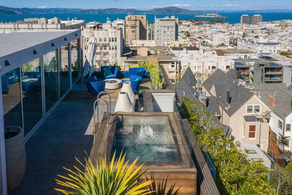 While your eight million bucks will only buy you about 2,500 square feet of indoor living space with three bedrooms and two-and-a-half baths here, it will get you all the friends who'll be coming to hang out by the fire pit and in the hot tub on your marvelous 1,500-square-foot rooftop deck which also, of course, has panoramic city views.