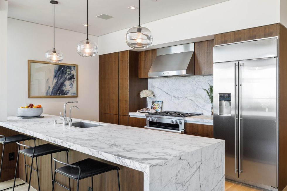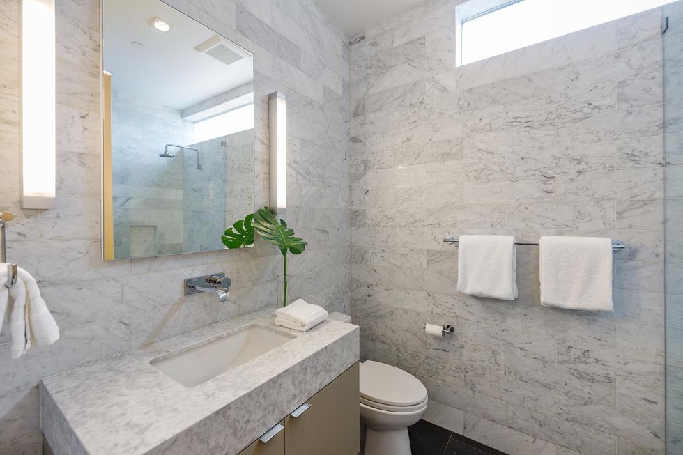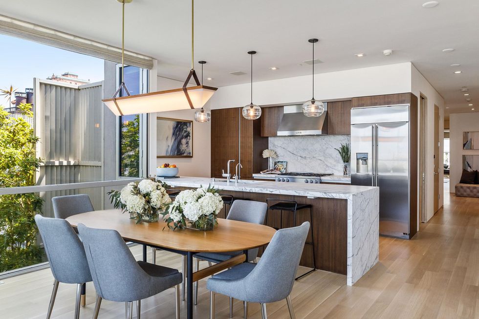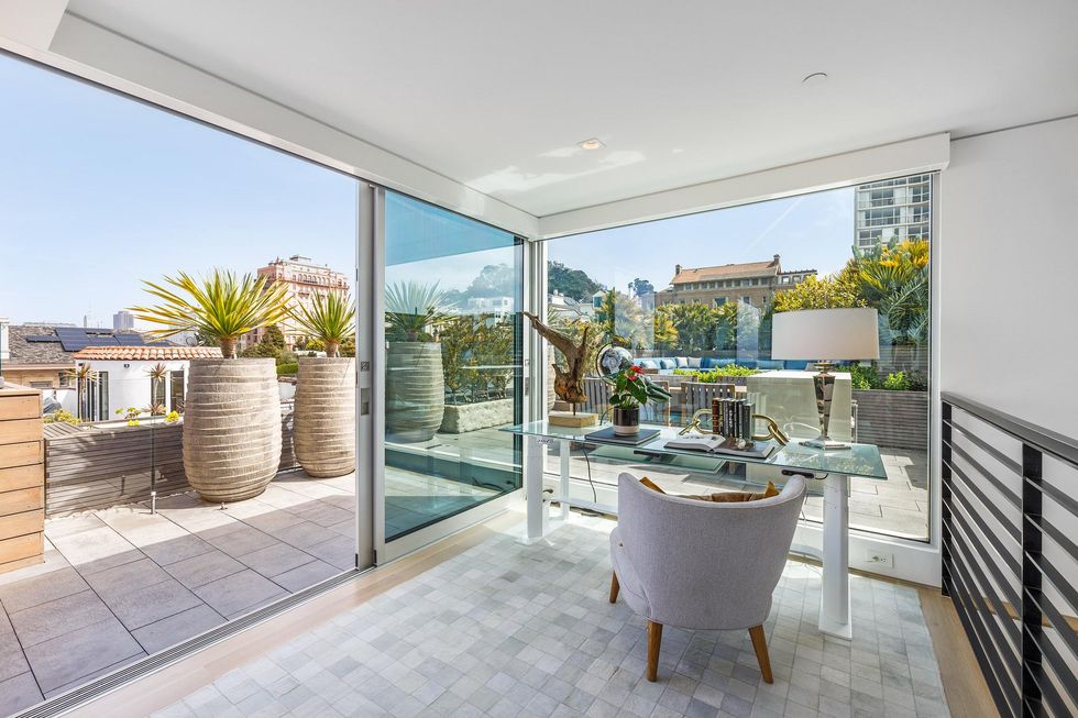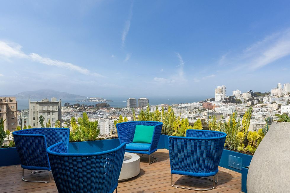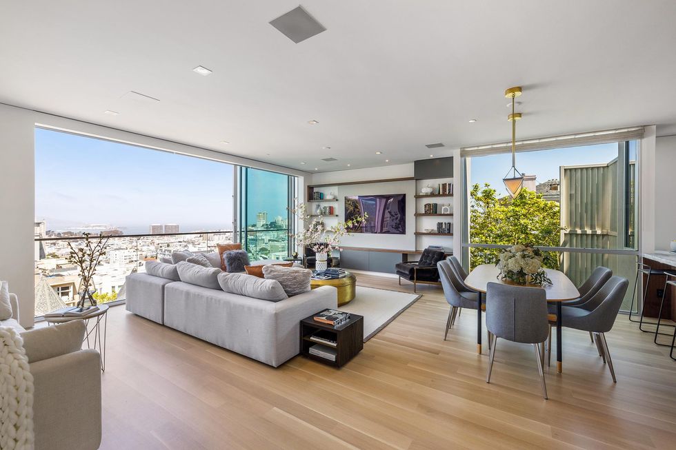 While your eight million bucks will only buy you about 2,500 square feet of indoor living space with three bedrooms and two-and-a-half baths here, it will get you all the friends who'll be coming to hang out by the fire pit and in the hot tub on your marvelous 1,500-square-foot rooftop deck which also, of course, has panoramic city views.