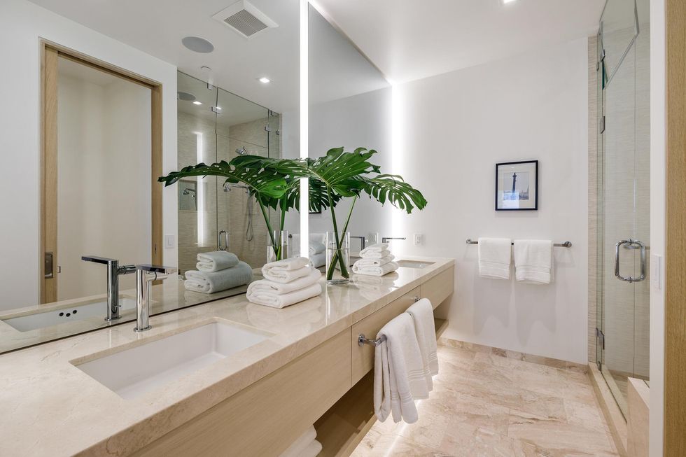 From the lobby with its herringbone marble floors, an elevator takes you up to the top-floor dwelling. The open floor plan has endless space for entertaining and a floor-to-ceiling windows.