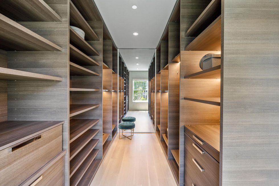 The master suite is a tranquil sanctuary with bay windows and a contemporary fireplace. The walk-in closet is a dream for organization junkies. Luxe vibes continue in the master bath with a floating dual sink vanity and large shower.