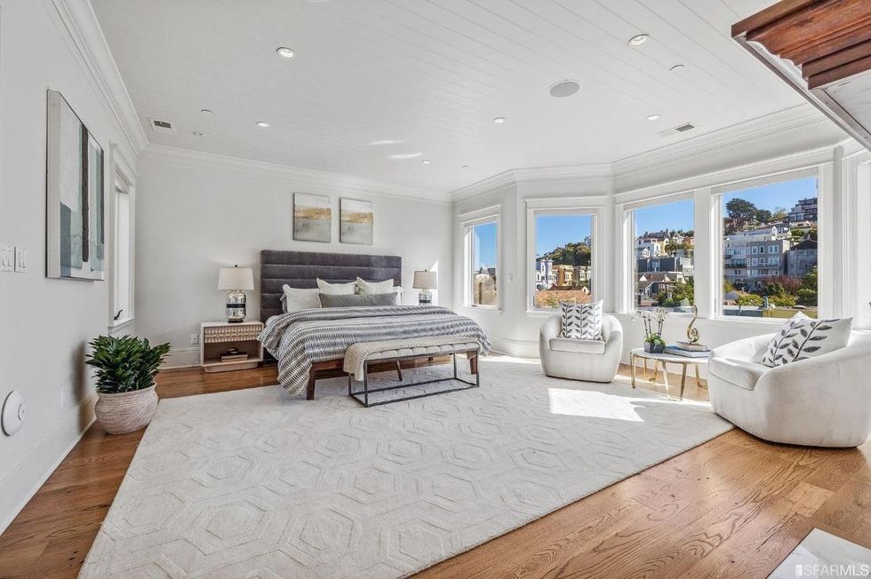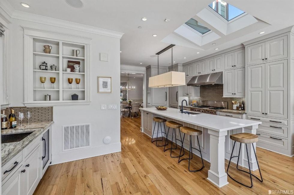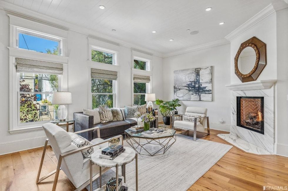 High ceilings, several fireplaces and skylights, and wide plank hardwood flooring are just some of the highlights of this lovely family home in the Castro.