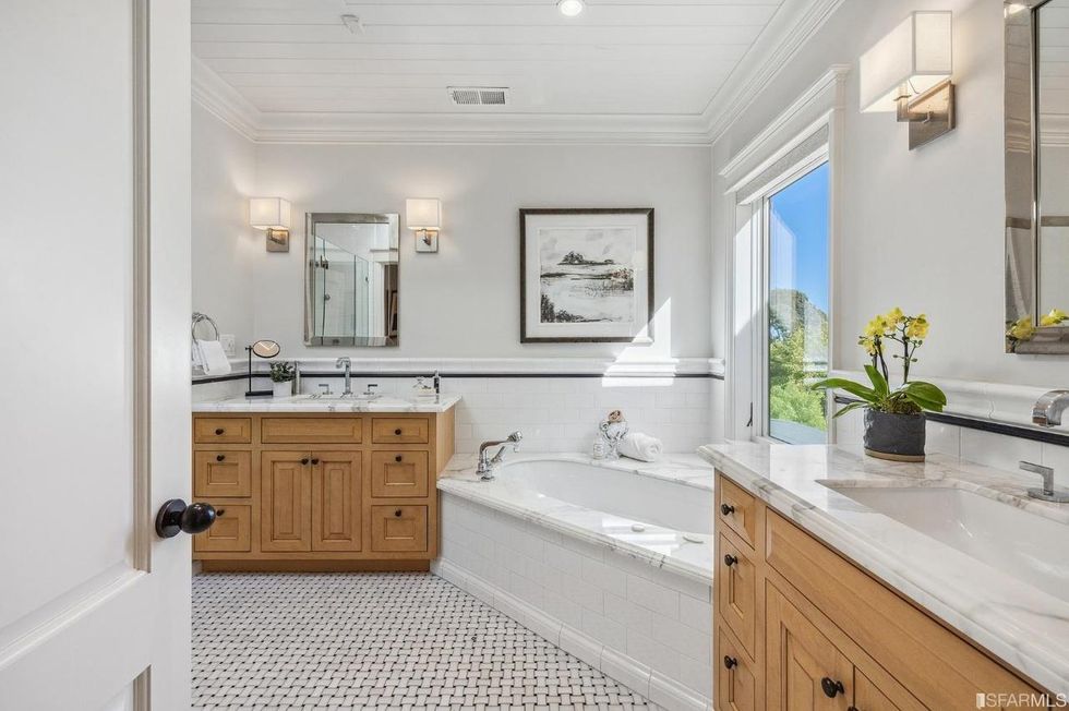 In true Bay Area fashion, there are also smart home integrations such as remote-controlled custom window coverings, a Sonos sound system, home networking and security system, solar panels, a Tesla Power Wall, and EV charger. But that's not to say this over 90-year-old home totally lacks for vintage details: You'll find these in the paneled wainscoting and in the built-in butler pantry in the dining room, situated on the main level, a haven for hosting.