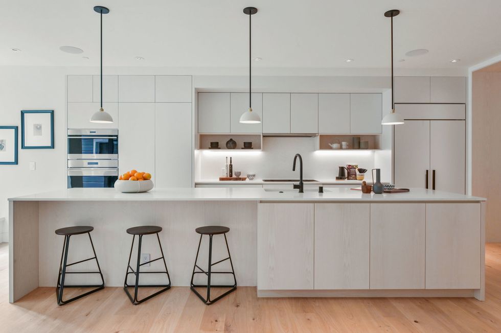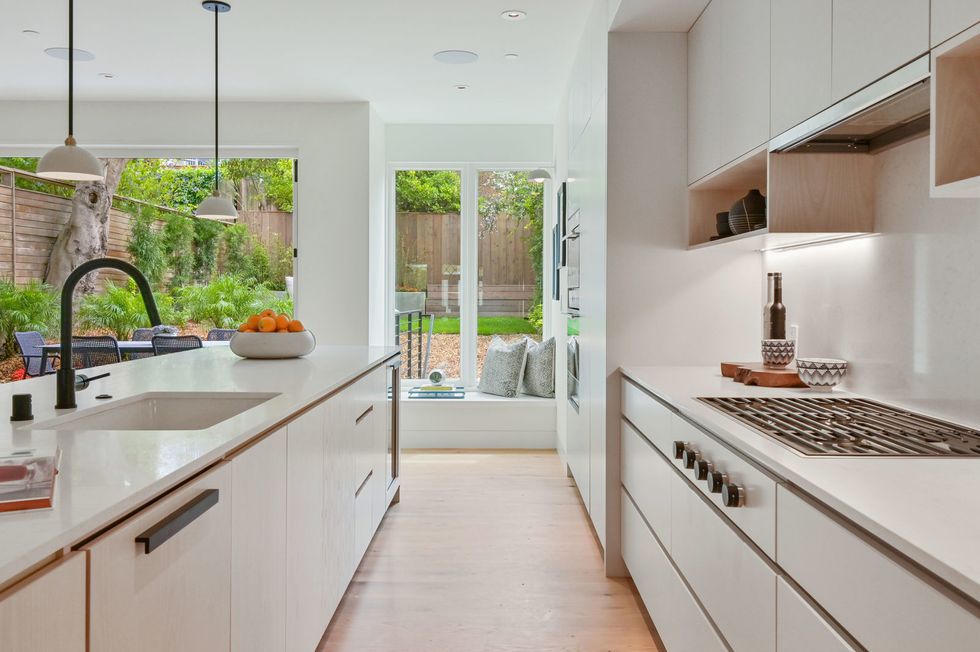 The home's originally wide and roomy layout lent itself perfectly to a contemporary expansion and renovation by San Francisco–based Il Nido Designs, which added brightness via additional windows and recessed LED lighting as well as luxurious trappings including new wide-plank oak floors, hydronic heated floors, and a Sonos sound system.