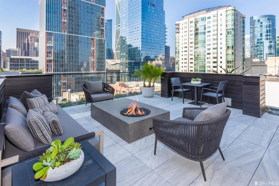Capping it all is a sky terrace with outdoor living and dining space, a gas fire pit, and a perch overlooking the city.