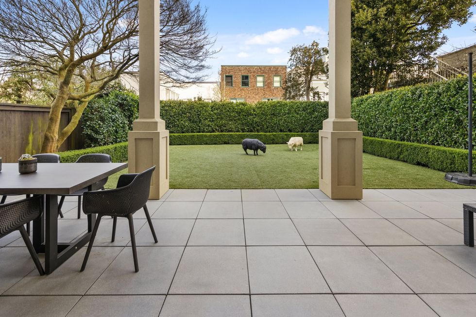 With access from the garage, the bottom floor has a guest bedroom with its own full bath and an extra den, but the backyard is the focal point here. Outside, a paved area with a heater makes for a lovely space to dine alfresco, while a turfed lawn surrounded by privacy hedges means there's plenty of green space to complete this private retreat.